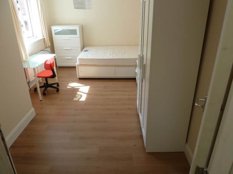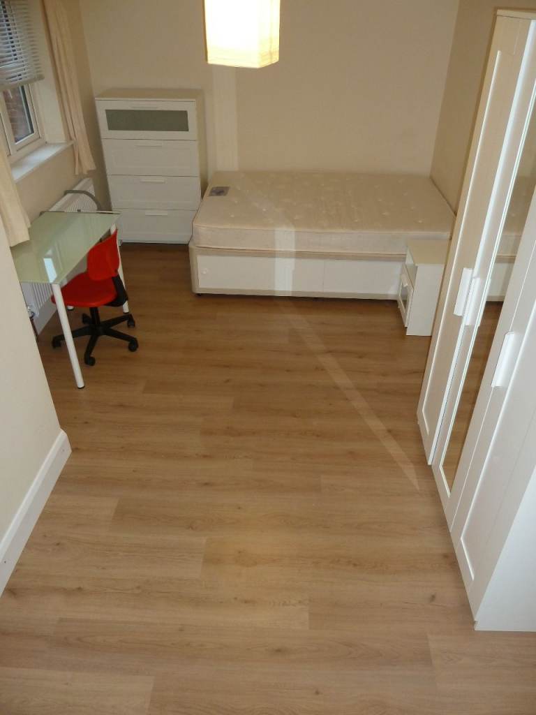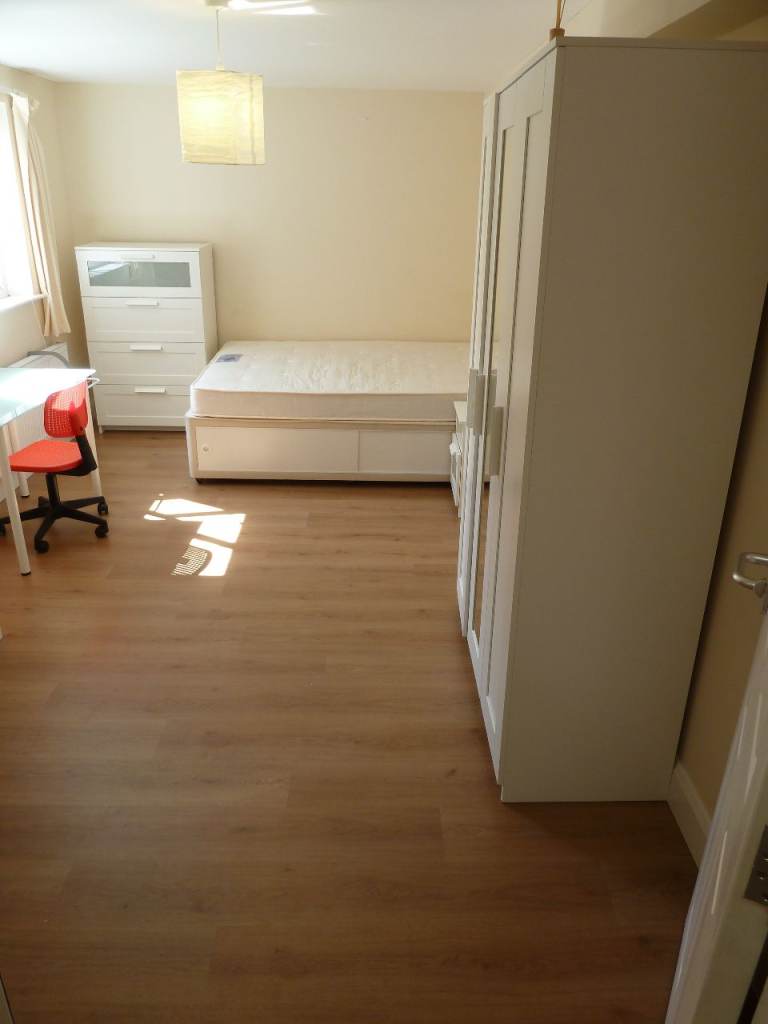 The available room (1st floor, rear), also contains a double bed (with storage drawers), a built-in wardrobe, bed side cabinet, a desk, chair, a Freeview tv point.