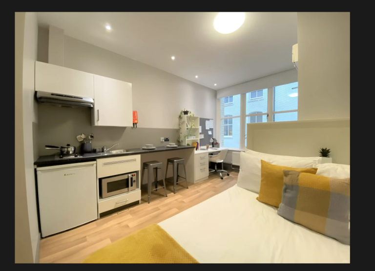 🛋️ **Living space:** Fully furnished studio (bed, desk, storage)