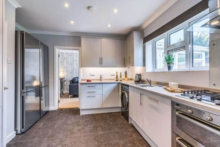 🍳 Large modern kitchen with plenty of cupboards, 2 fridge freezers, cooker & washer/dryer