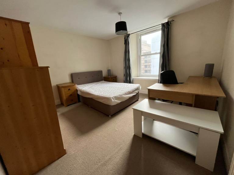 Flat itself is fully furnished (bed, huge wardrobe, desk, etc.). Double glazed windows and gas central heating so the cheapest heating you can get. Decent size kitchen equipped with all appliances (washing machine, oven, cooker, etc.). Separate living room. Nice bathroom with bathtub and electric shower. Perfect for single professional or student. Must be seen to be fully appreciated. Please WhatsApp for more information.