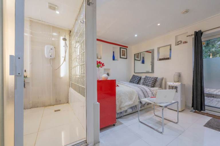 A special and completely unique, independent and private studio flat set within a mature 60 x 40 foot garden. Both managed and wild areas distinguish the garden and the studio, designed by an architect and styled by an interior designer, make this a one- off dream rental.