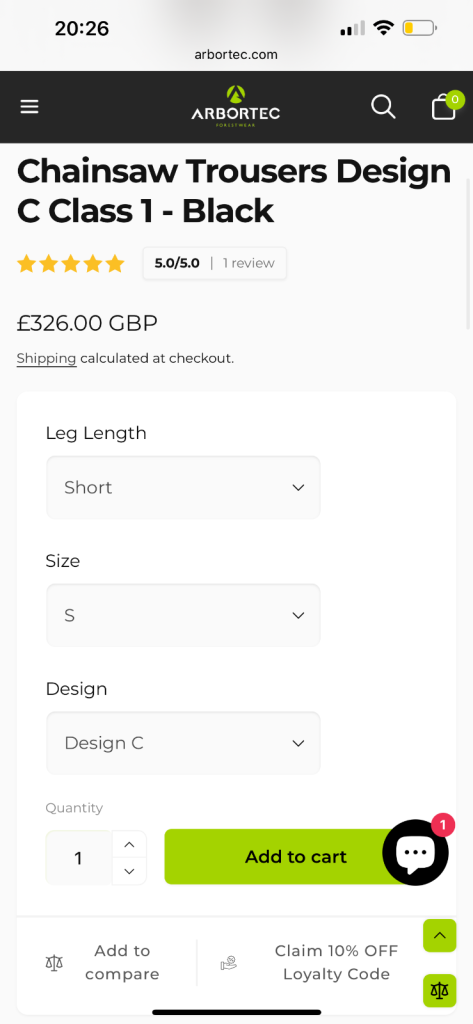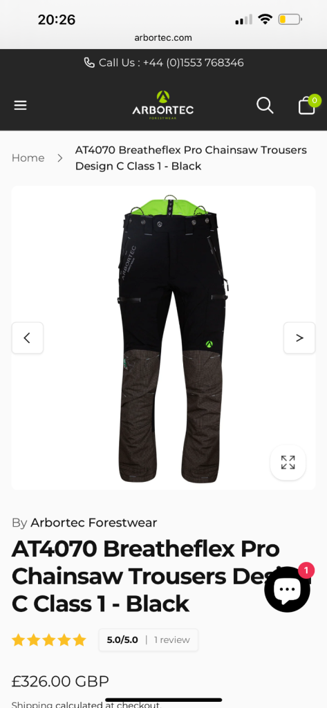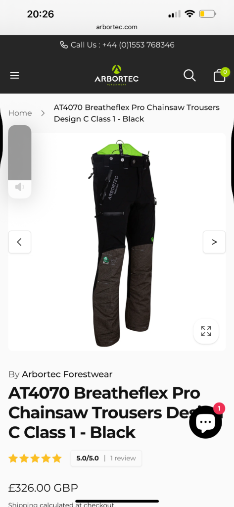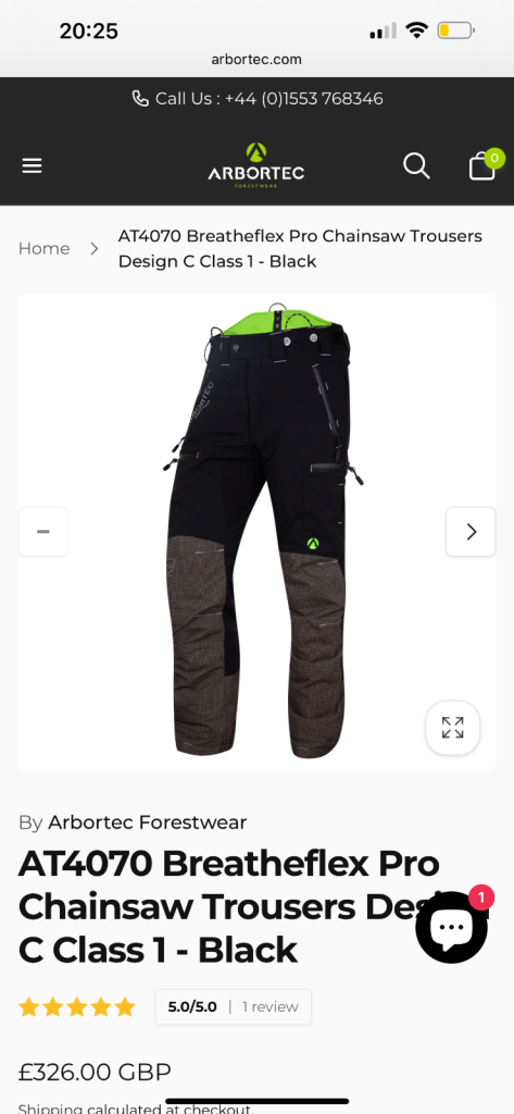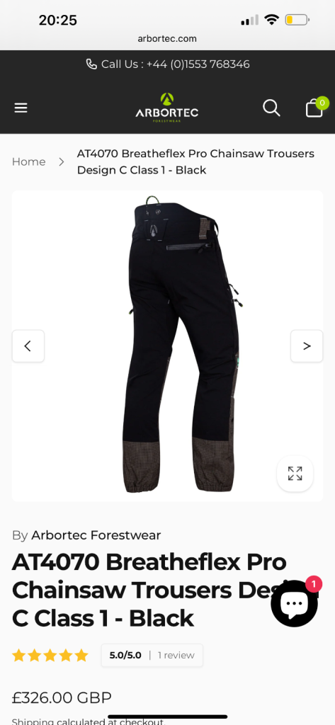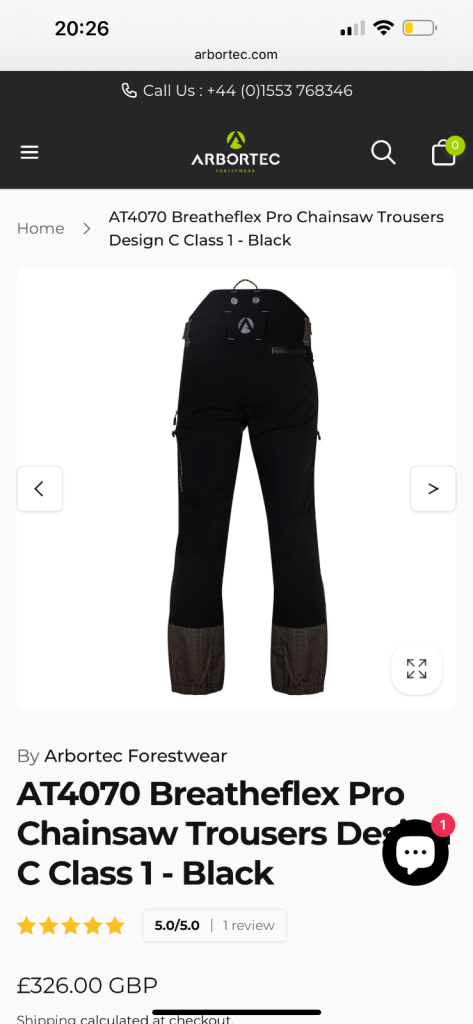 AT4070 Breatheflex Pro Chainsaw Trousers Design C Class 1 - Black × 1