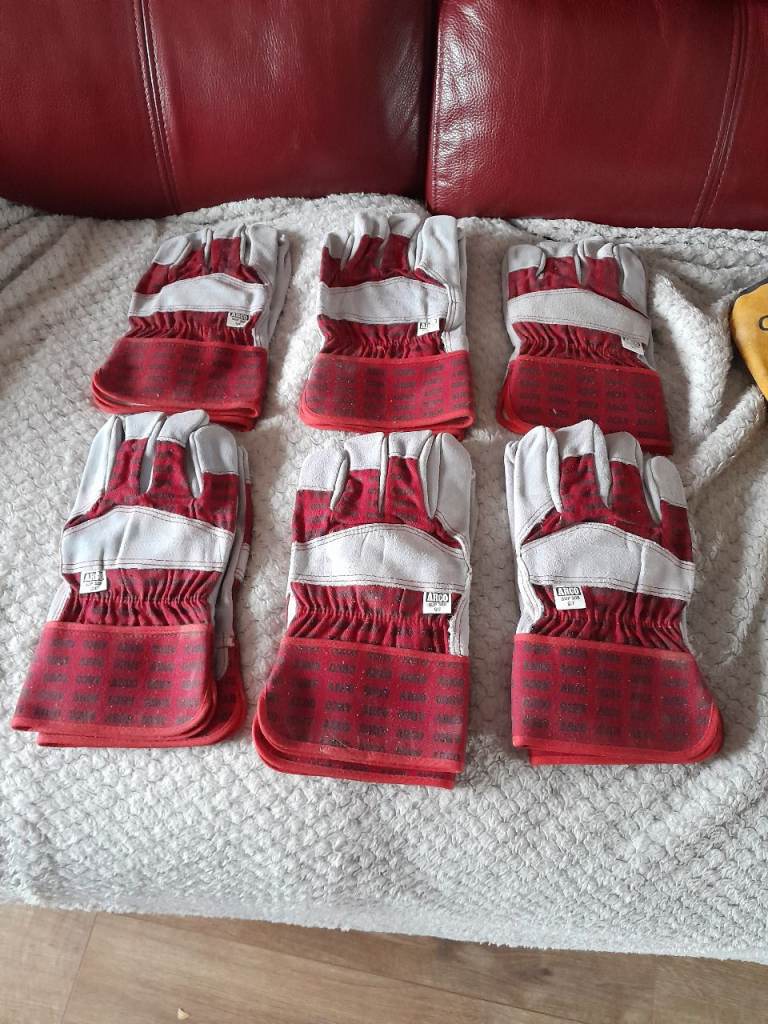 Twelve pairs of heavy duty work gloves as seen in the photos. Never been worn selling as job lot not individual pairs