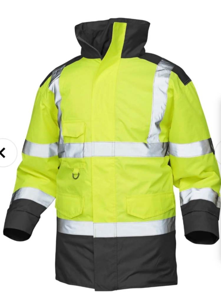 For sale, 1 x used (never worn) Large size Veltuff hi-viz padded foul weather jacket with folding hood.