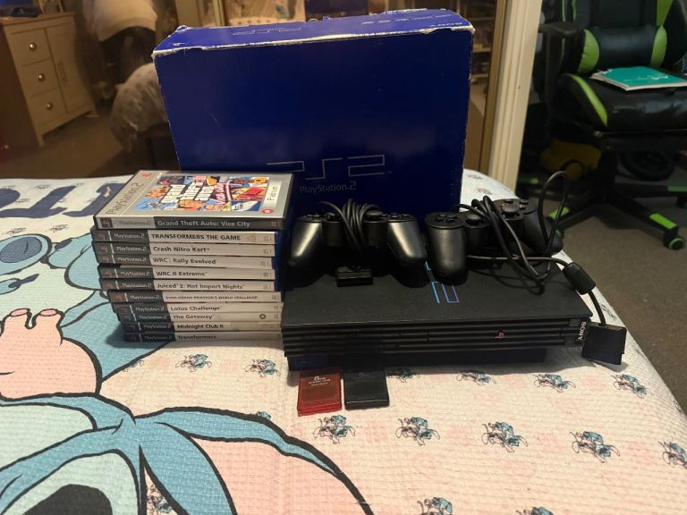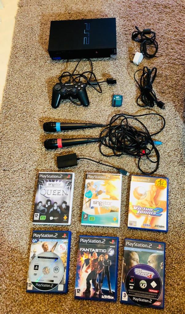 Boxed ps2 with all wires 2 controllers not Sony ones excellent condition and 2 memory cards and selection of games