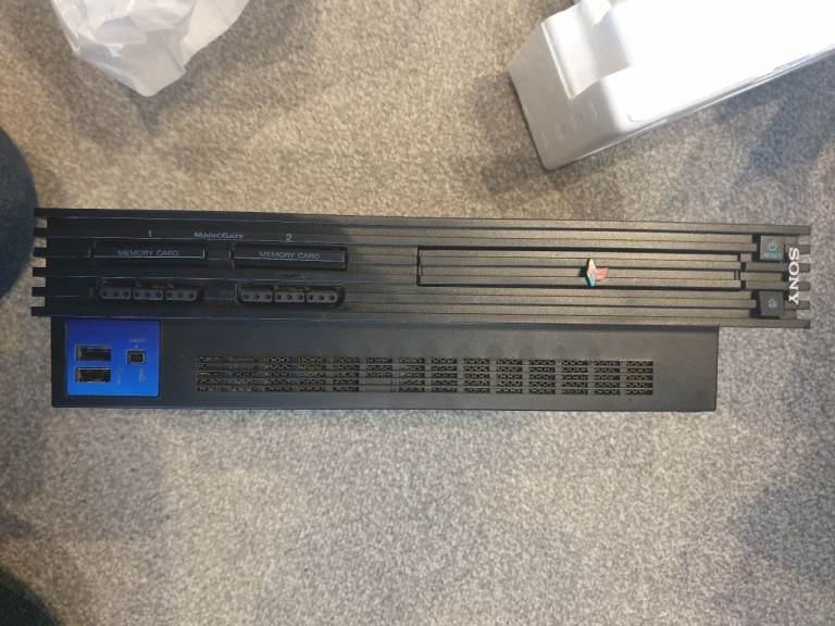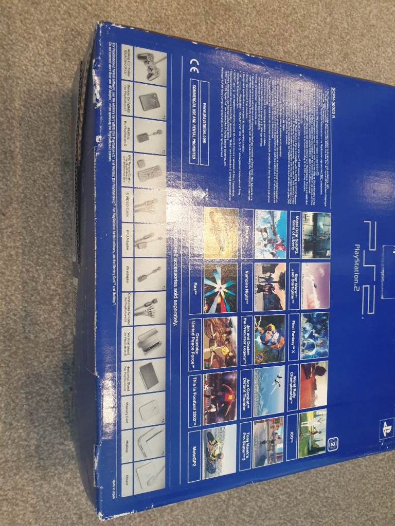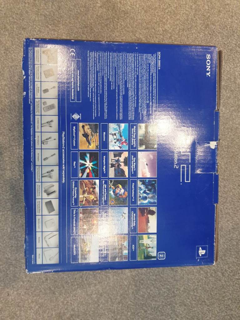 Near mint condition PS2 with one controller and original leads. Original polystyrene inserts, wrap and instructions manual.