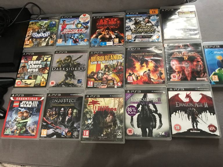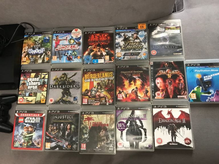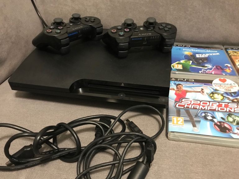 Selling mint condition and fully working order Sony PlayStation 3 PS3 Slim CECH-3003B 320GB Console with 7 games and two controllers all lead’s included !! Please no silly offers only one game GTA Sanandreas is worth £40 . Prefer cash on collection or I can deliver locally free of charge for asking price. Thanks