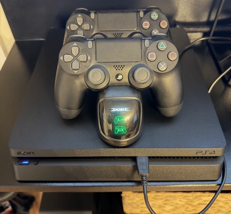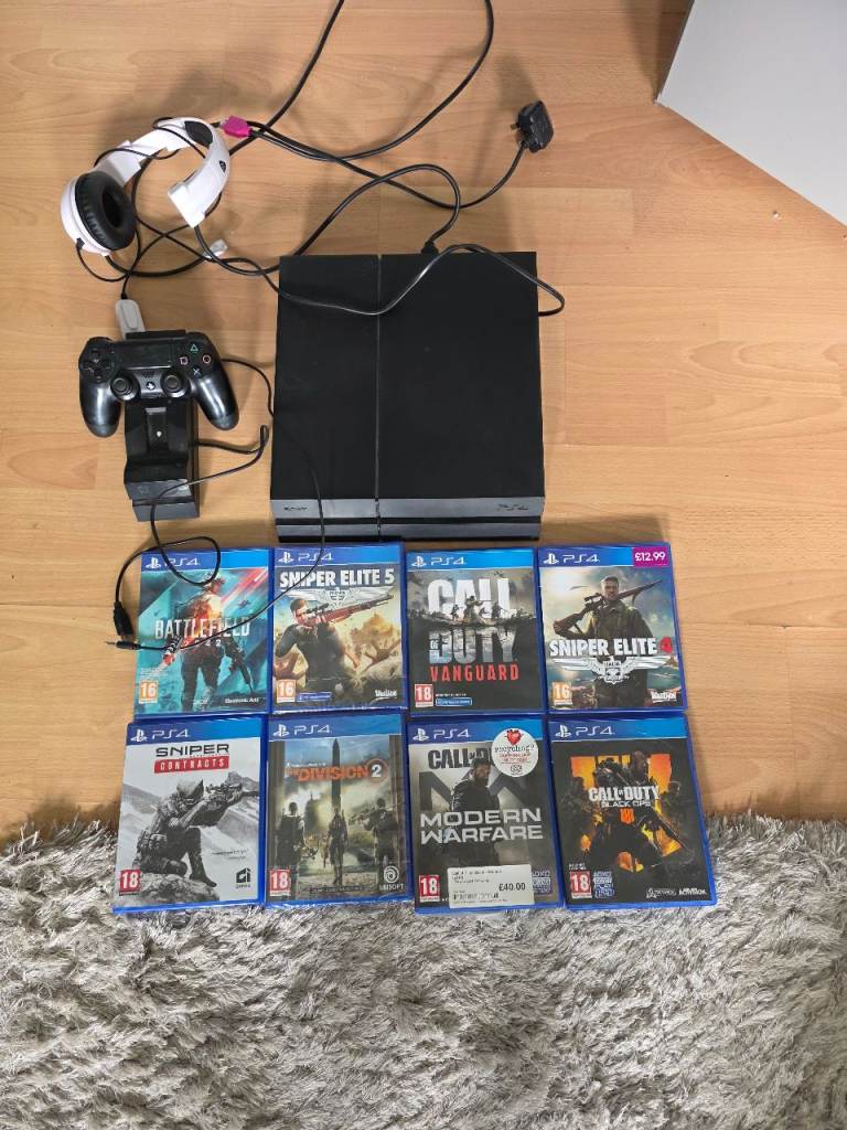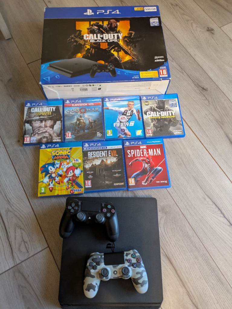 Black PS4 500gb console in excellent condition. CALL OF DUTY WWII EDITION with original box and packaging. Everything works perfectly and games are not damaged at all.
