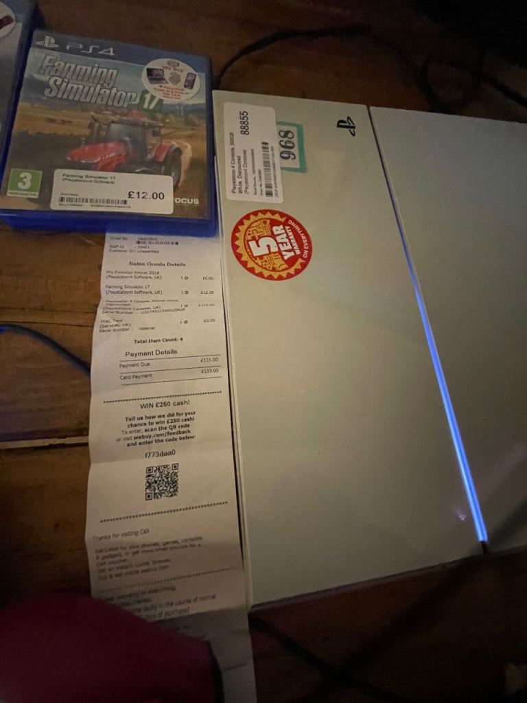 The console does come with a receipt insuring just under 5 year of guarantee with CEX.