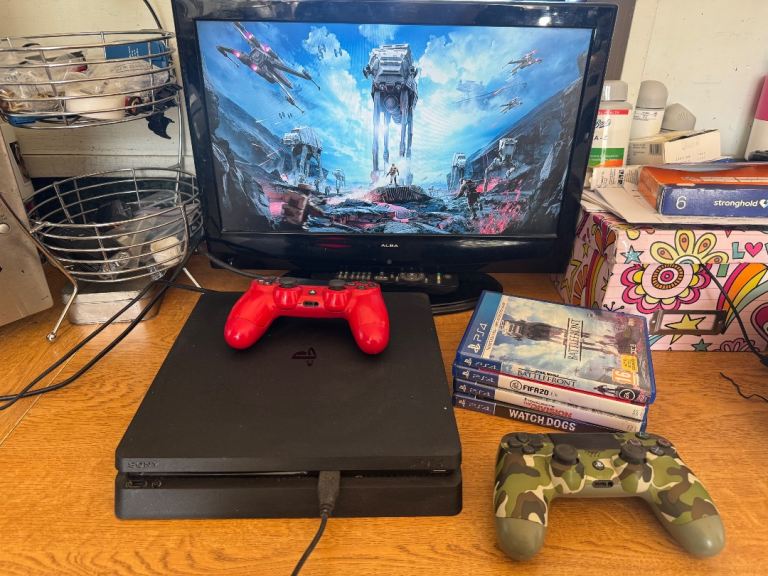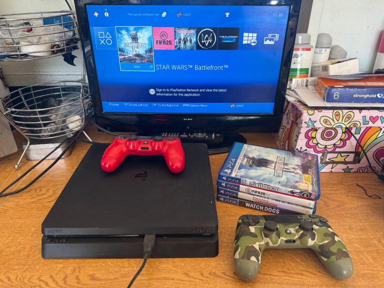 Slim ps4 console 500gb with all cables, 2 controllers and 4 games as pictured. Will be shown working when collected. Cash on collection is from Bath
