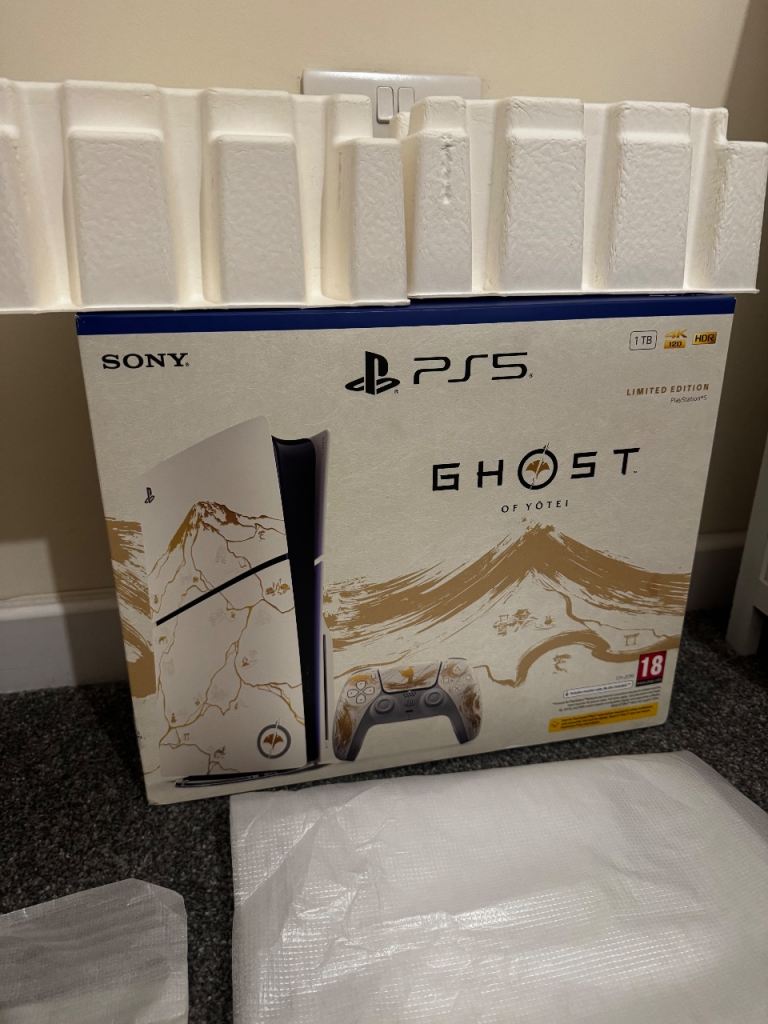 playstation 5 ghost of yotei edition in overall really good clean condition always looked after fan has always been kept clean was purchased from argos new includes the original yotei controller like new