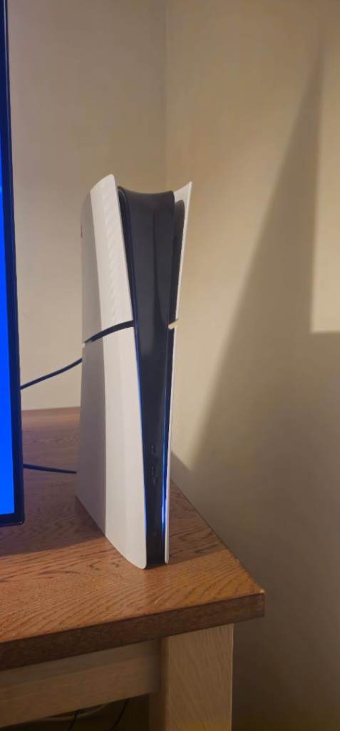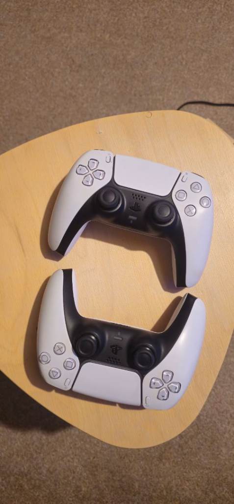Selling my ps5 slim alongside with 2 Controllers. 1 is in perfect condition and the other one has stick drift but cosmetically good. This comes with no games.