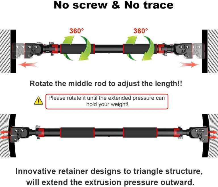 NO Screws & NO Drilling】Setting up our pull-up bar takes only minutes to place on the door frame. The HANDSONIC pull-up bar is designed with two anti-skid devices on both sides. Simply rotate the pole and press it against the door frame. The doorway pull-up bar firmly sticks on the wall. The harder you pull on the chin-up bar, the more stability the bar will possess. The maximum weight capacity of the pull-up bar is 440 lbs. The pull up bar fits door frames between 28.7"-36.2".