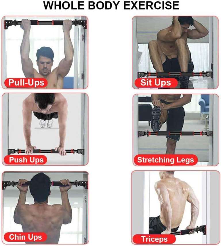 【HOME GYM ESSENTIAL】 Our pull-up bar is perfect for pull-ups, chin-ups, sit-ups, dips, crunches, triceps dips, leg raises, and more. The pull-up bar is easy to carry and hassle-free to install. You do not need to go to the gym. You can save time and money by using our pull-up bar to workout at home!