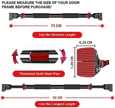 【Adjustable Pull Up Bar】HANDSONIC’s pull-up bar allows you to customize the length and easily fits most door frame. Installation of the pull-up bar requires no screws or drilling. The chin-up bar can be adjusted to the mounting height at any time. Please measure the size of your door frame before purchasing to ensure the pull-up bar will fit your door frames.