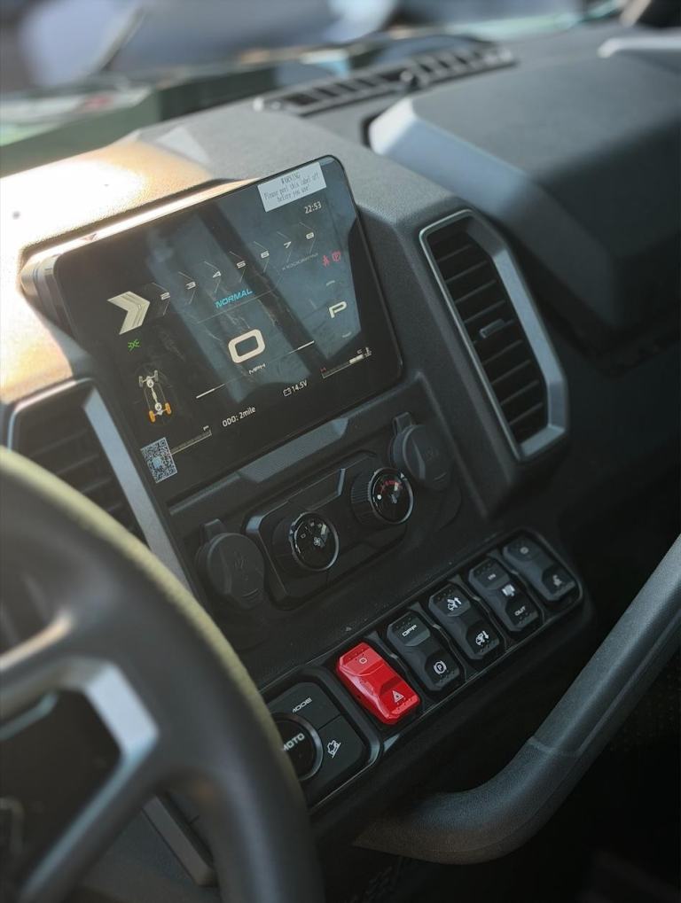 Inside the cab, the Highland model offers a premium, automotive-style interior designed for comfort and usability. It features a large integrated touchscreen display with Apple CarPlay compatibility, allowing seamless smartphone connectivity for navigation and media. The cabin is fitted with high-quality seating with a durable leather-style finish, alongside a factory-installed sound system and soundbar to provide clear audio while working. Combined with electric windows, heating, and a fully enclosed insulated cab, the interior creates a refined and practical working environment suitable for year-round use.