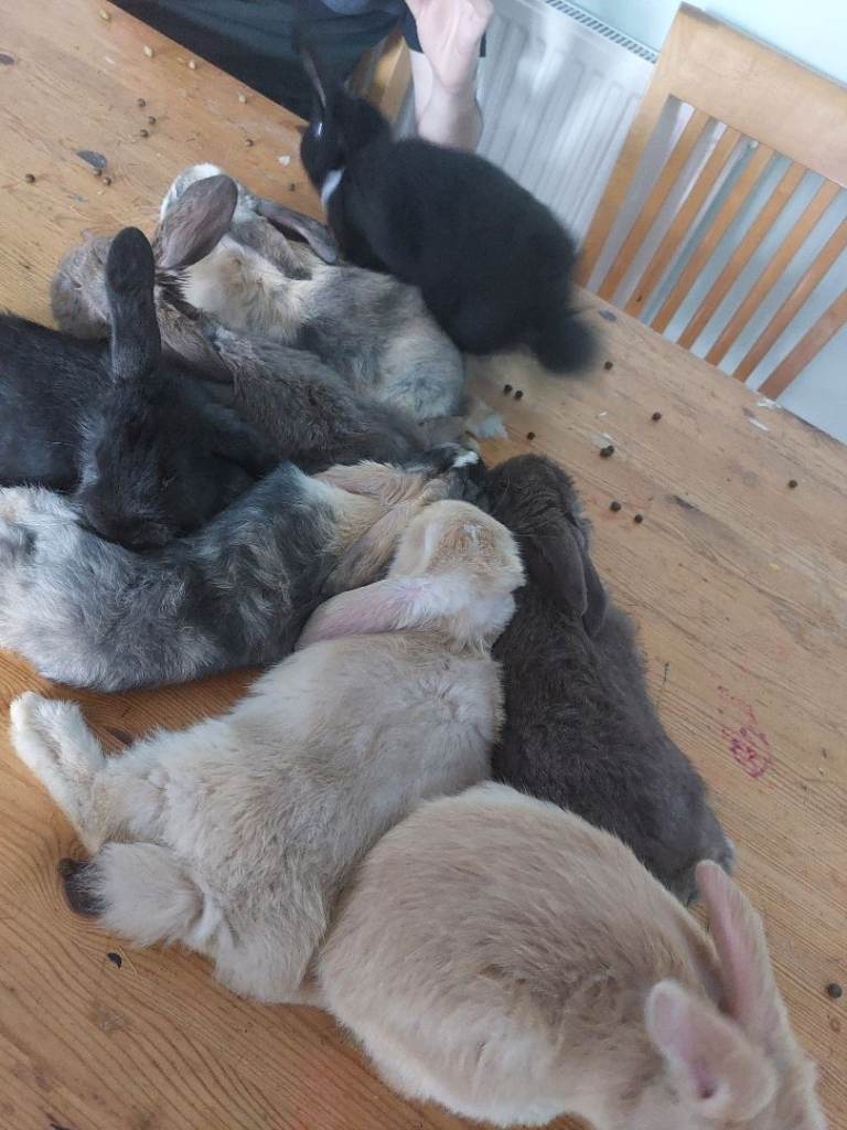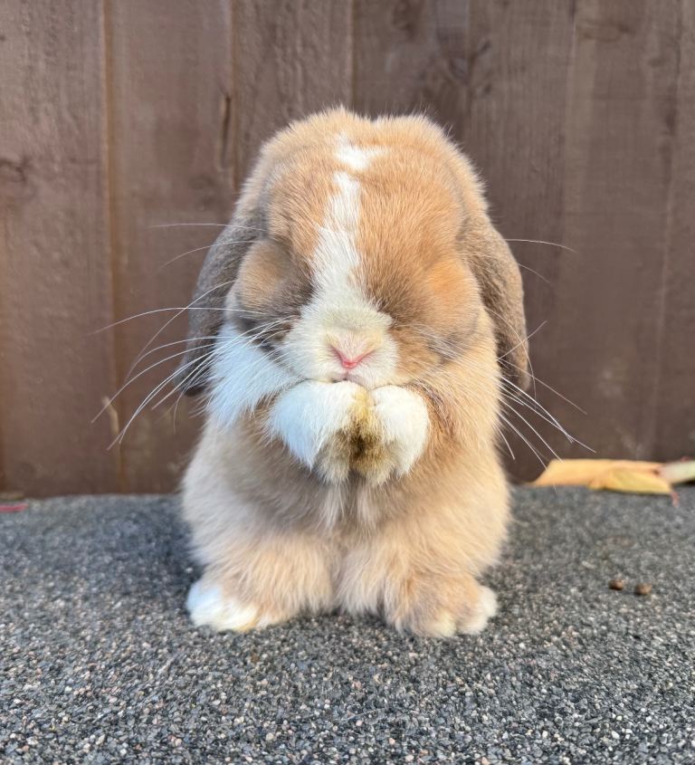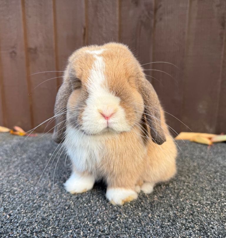 Available to leave now is this beautiful sooty fawn split blue eyed mini lop - he is a small and compact bunny with an amazing temperament. He is like a little puppy, runs up and down buzzing with excitement when he sees you - will follow you around the garden - He is super easy to handle and loves a cuddle - partially litter trained as he hasn’t mastered this fully yet - not neutered.