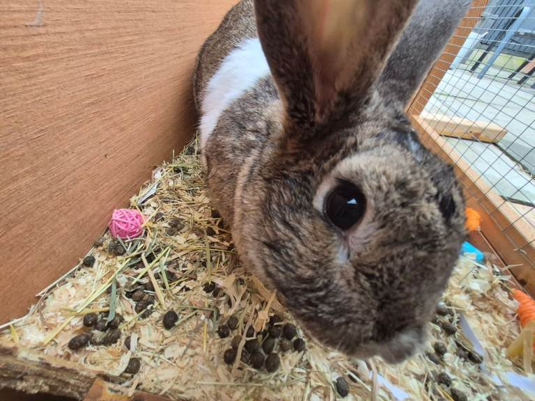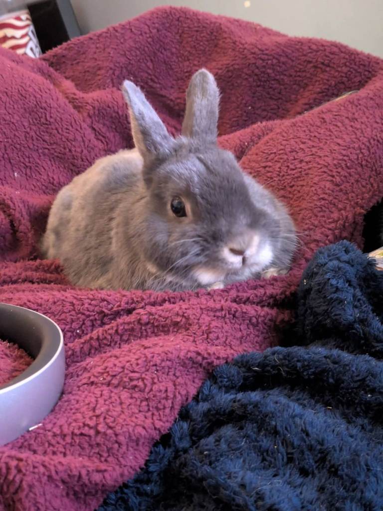 Sweet, friendly rabbit looking for a loving home. This little one is missing one eye, but it doesn’t slow him down at all — he’s happy, active, and get around perfectly well. He eats normally, are used to people, and have a gentle temperament.