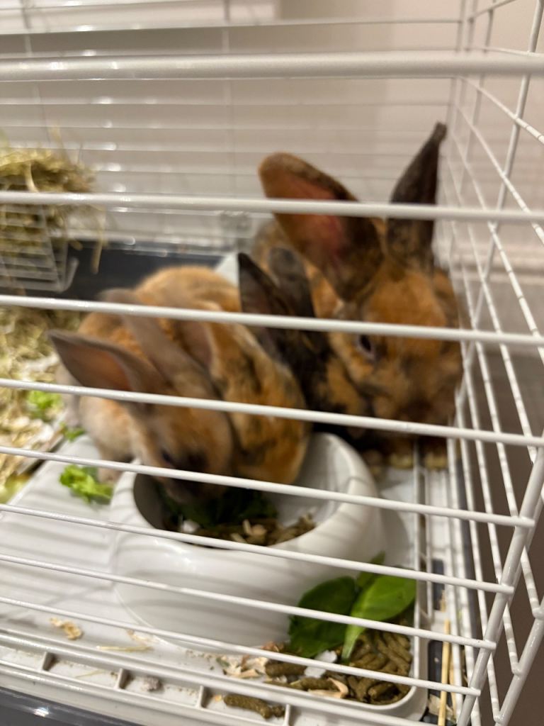 3 baby rabbits that are 7 weeks old. They are all harlequins (breed of rabbit). Each for 50£.The rabbits are all healthy with no problems or issues with health so far. They are calm and nice bunnies.