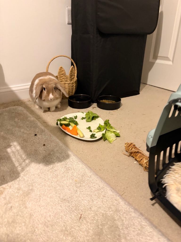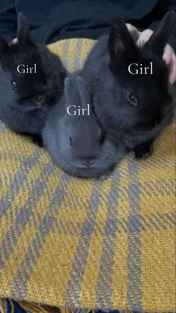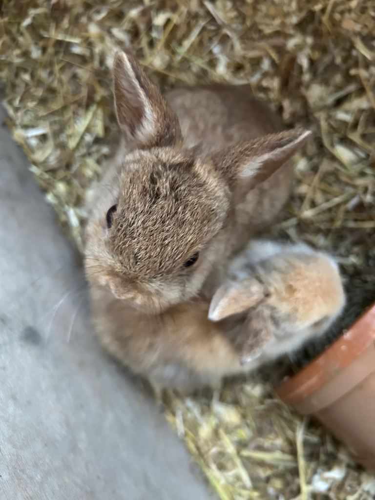 8 week old baby bunnies, ready now. Parents can be seen, small bag of rabbit food provided.