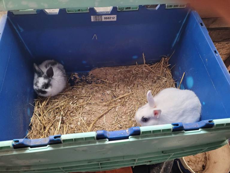 Very cute and healthy baby rabbits 8 weeks old Ready to go now £25 each can deliver locally for charge first come first serve no time wasters please thanks