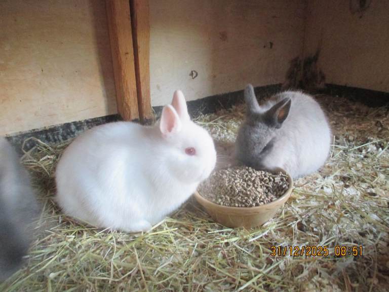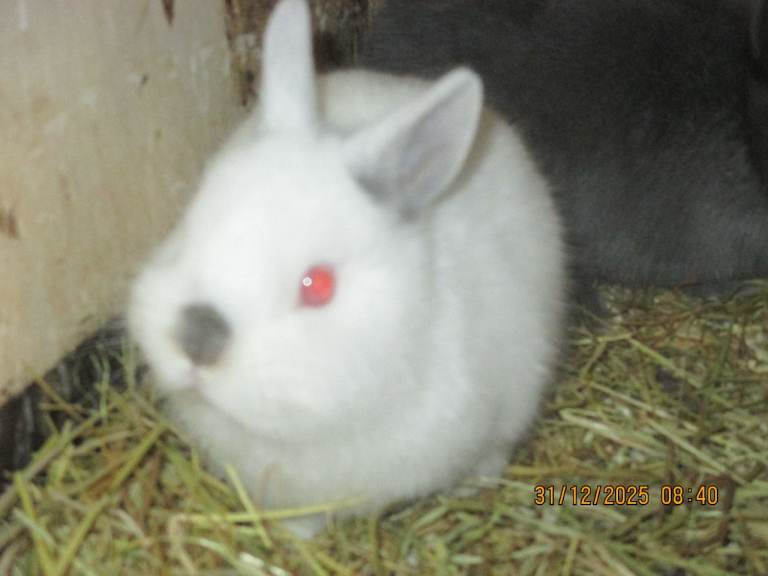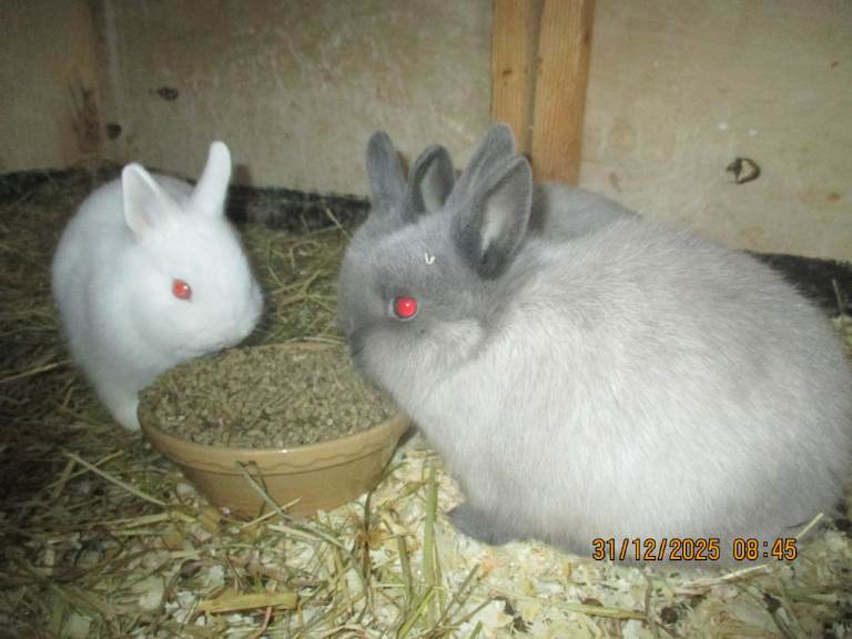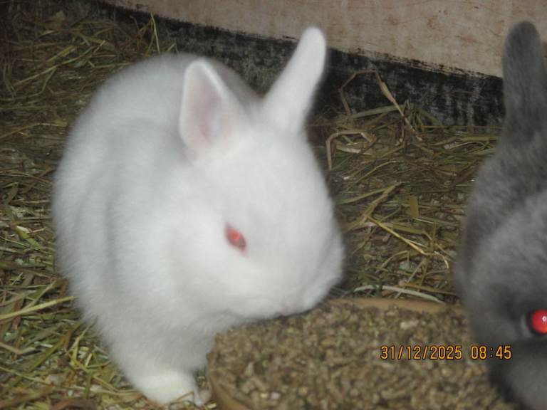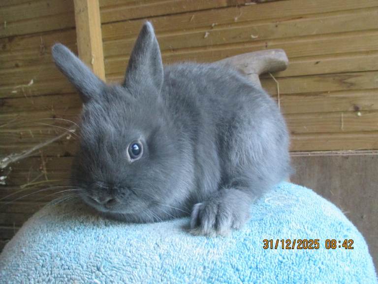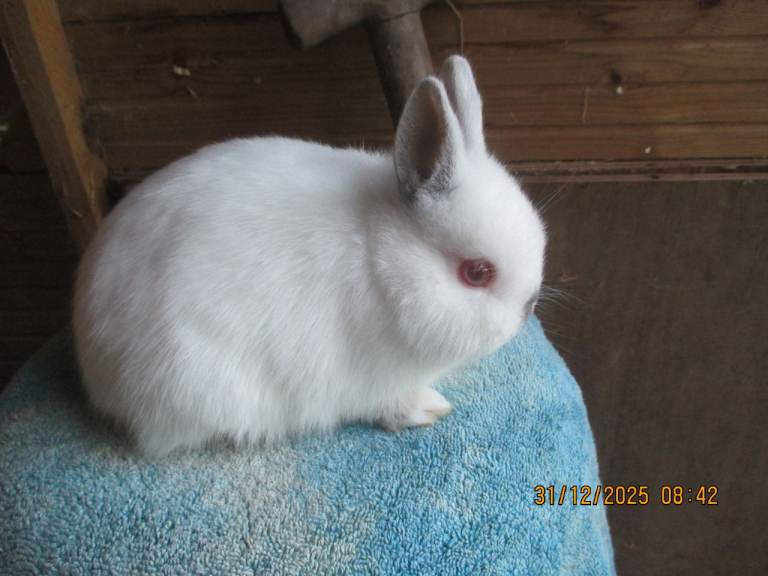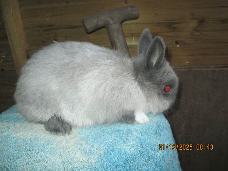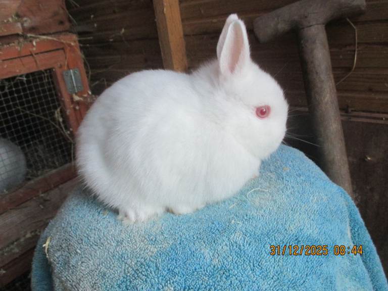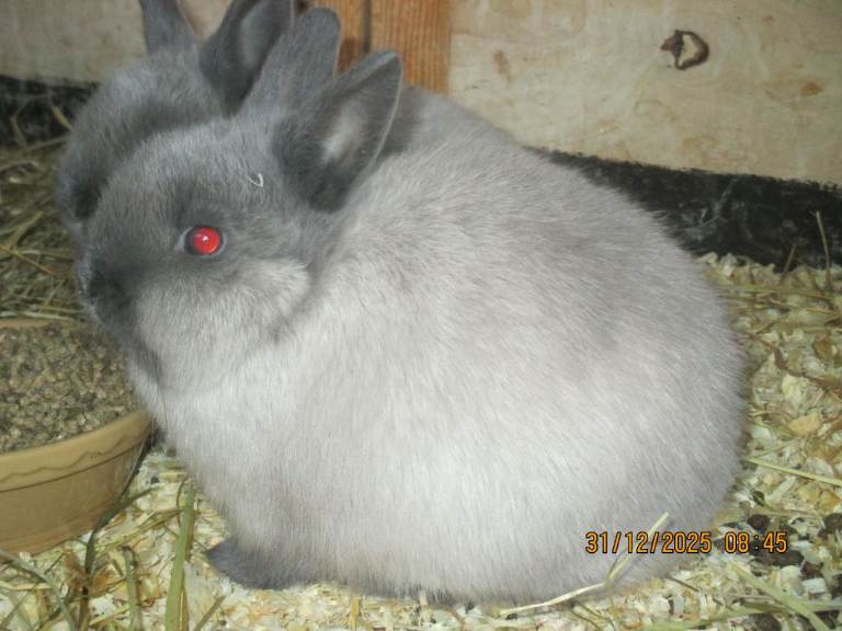 beautiful purebred Dwarf babies, 1 blue boy, he's the shy one and his very small brother, white with grey nose (Himalayan marked). He's very curious, getting his personality. Then there's a Smoke girl with a white foot, and her all white sister. Both very bouncy and nosy. I have bred these for many years, they are one of our smallest breeds but big on character! Visitors welcome, but please call or text me as I do not have internet on my phone, and don't come on here much. I will always answer emails, but may take a while!