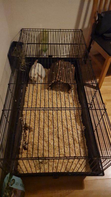With cage (120cm long), toys, food and all accessories needed for hers happiness. Perfect pet for your kids or yourself. Moving to new flat where i will not have a space for the big cage :(