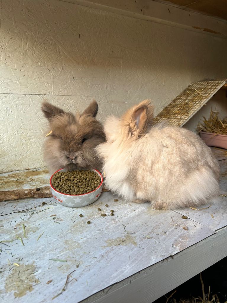 Bonded trio of Lionhead bunnies
