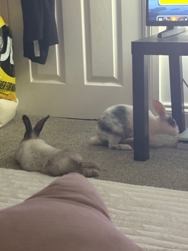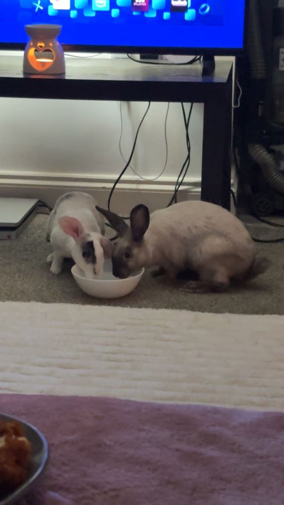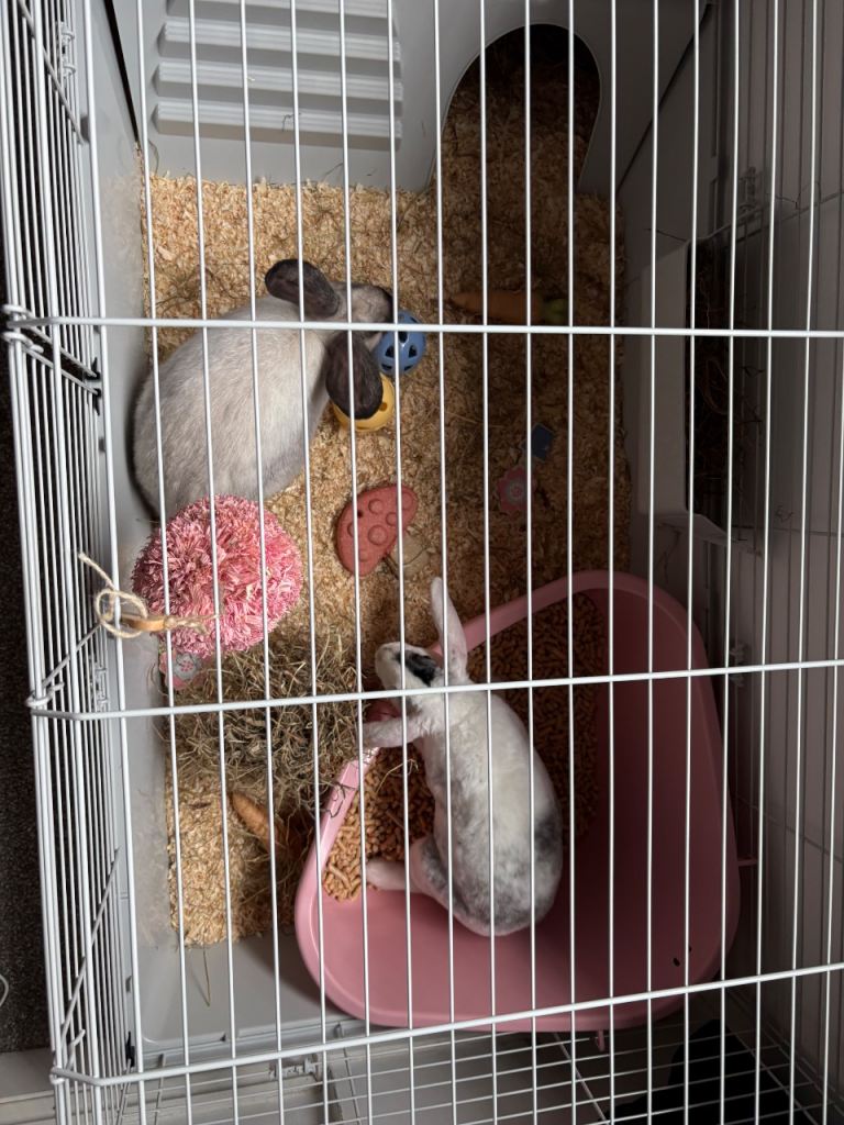 2 bunnies for sale 14 weeks old both girls selling them due to landlord at my place can’t keep them, message me for details comes with food cage and wood shavings/hay. Open to offers x