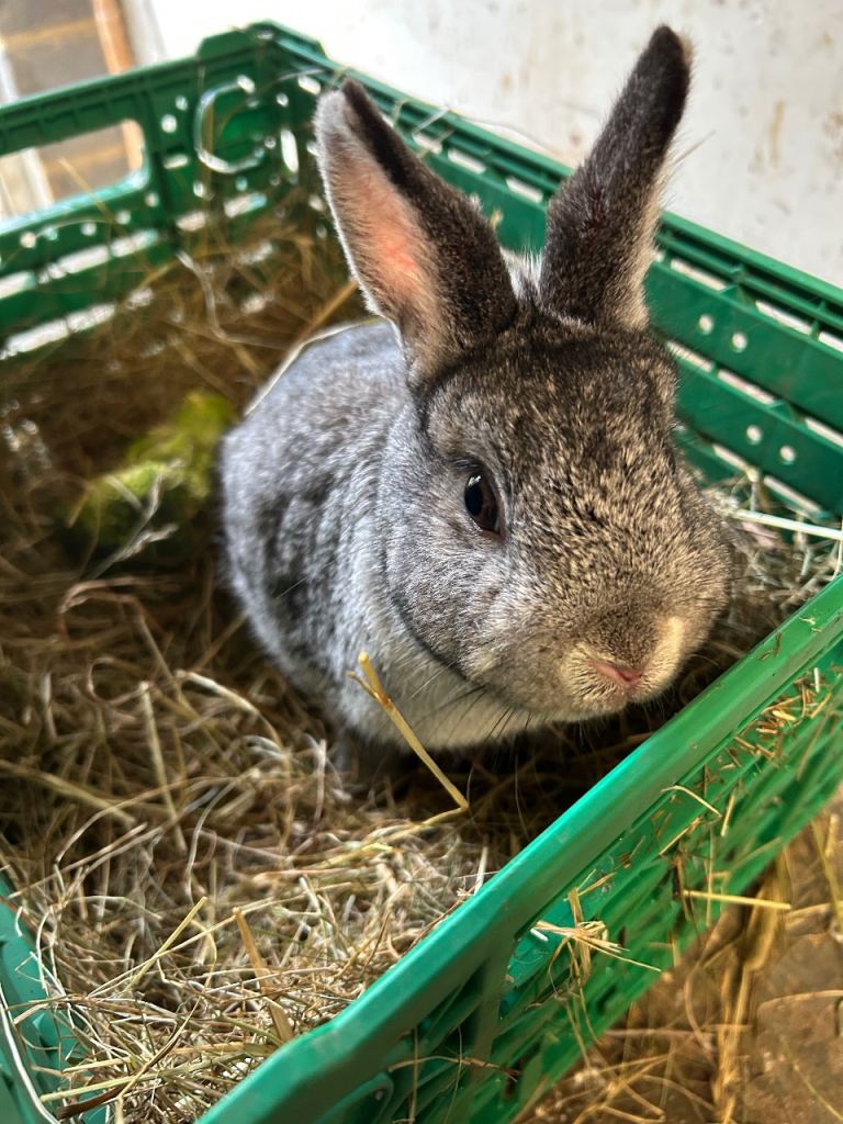 Mixed breed young rabbit , chinchilla colour mum Netherland dwarf and dad Dutch , female bunny for sale five months old , very friendly ideal pet sits well and used to other rabbits , very healthy , will stay smallish