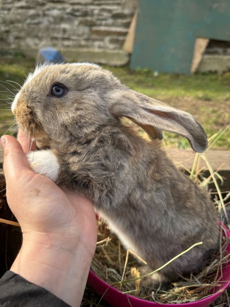 A lot of people keep this breed as house rabbits but these babies have been raised in a barn on the farm x