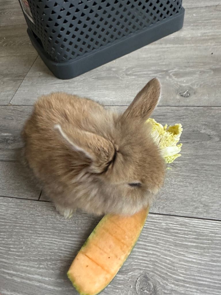 4 baby bunnies for sale. £25 each. This breed is very human friendly and loves to be picked up & cuddled & petted. They are completely weened & are eating & drinking on their own. They are especially good with children as they do not bite or nip at all.