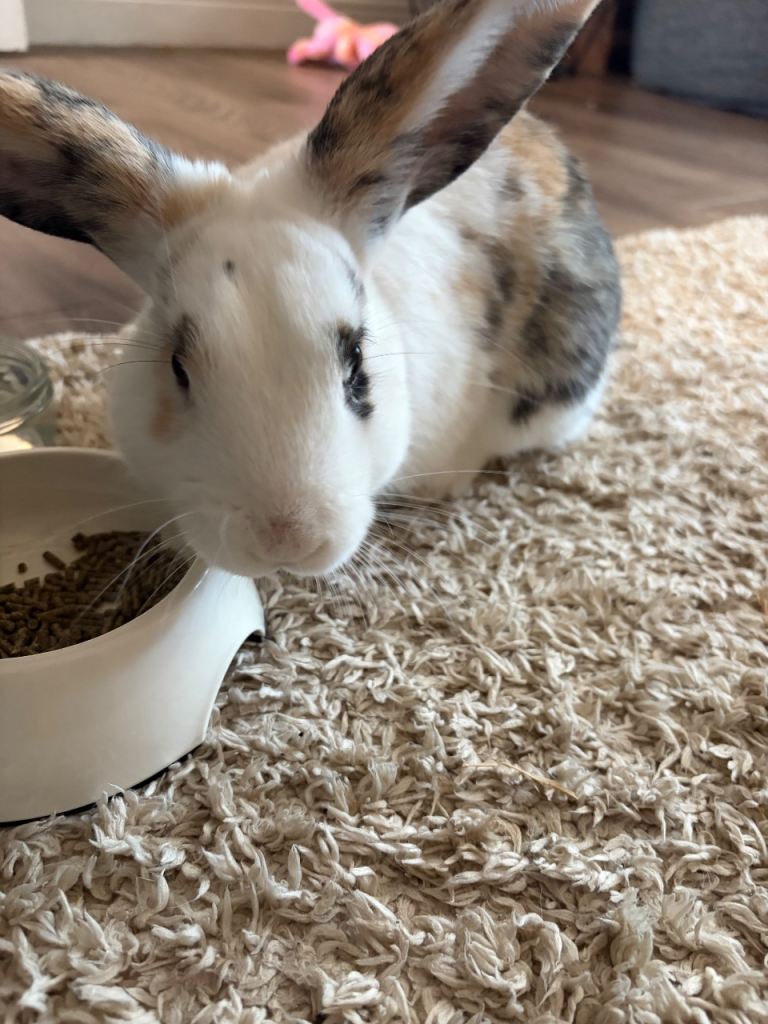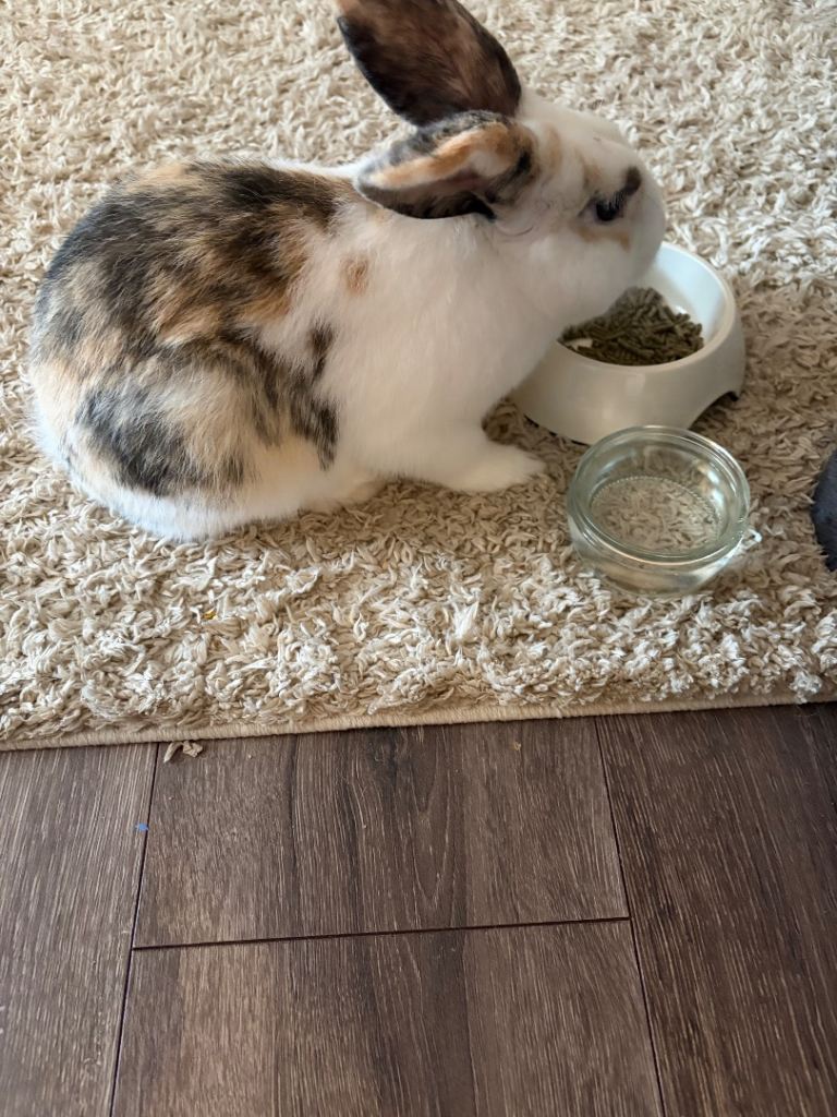 Buddy is about 15/16 weeks old, He has been vaccinated but is not neutered, very friendly, good with small children ( and cats) he does come with if you want it an indoor cage, water bottle ect He is litter trained, in cage and outside ( will mostly go on a puppy pad) only for sale to a loving home. Please message for any more details :)