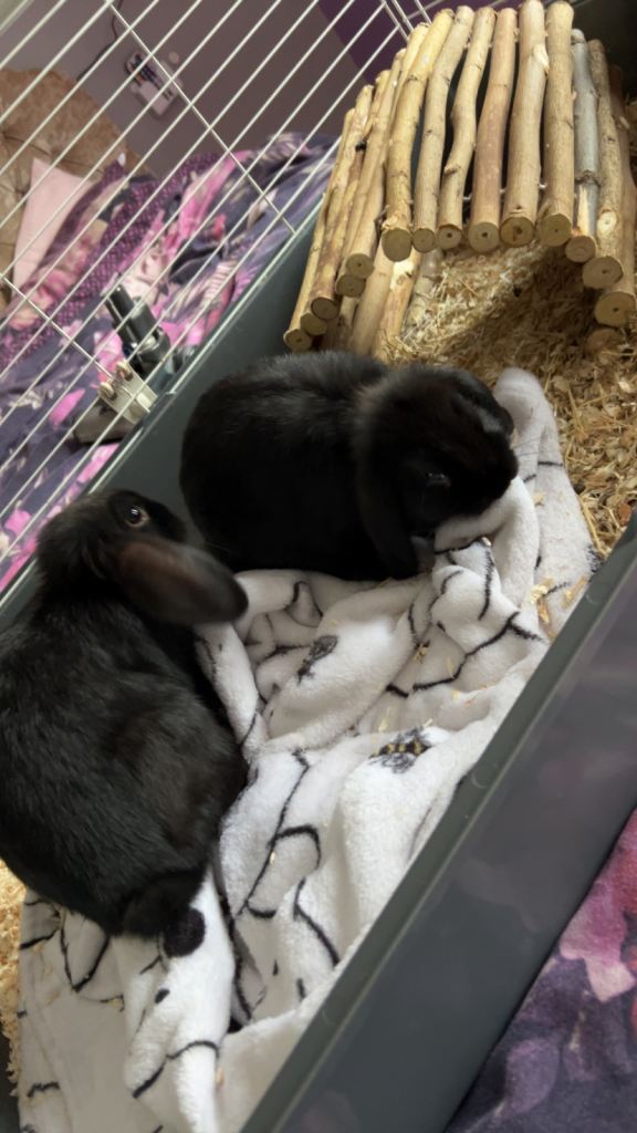 Due to moving we are broken to have to sell our babies. Male and female mini lop black with blue undercoat. Both have had vaccinations and health checks although neither have been spayed/castrated. Diamond had has a litter however they did not survive. They must go together. Collection only