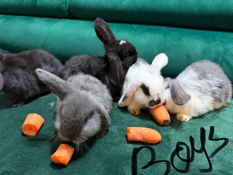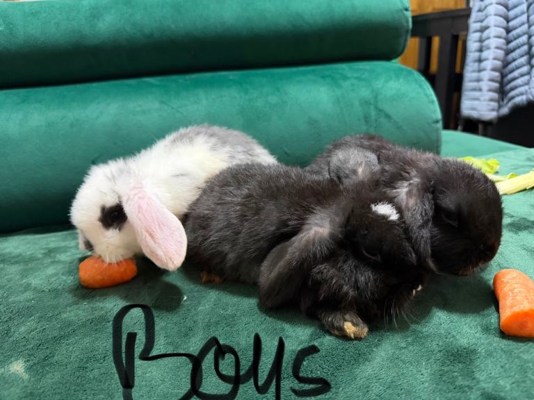 7 Gorgeous medium size french lops (5 males and 2 females)ready to go anytime!they been handled by ius and my girls daily so are quite friendly and used with people around!them are not vaccinated or neutered,we keeping them outdoors but are absolutely fine indoors as well!pick up from G52 or we can also drop them is is local!Parents can be seen in the last 2 pictures