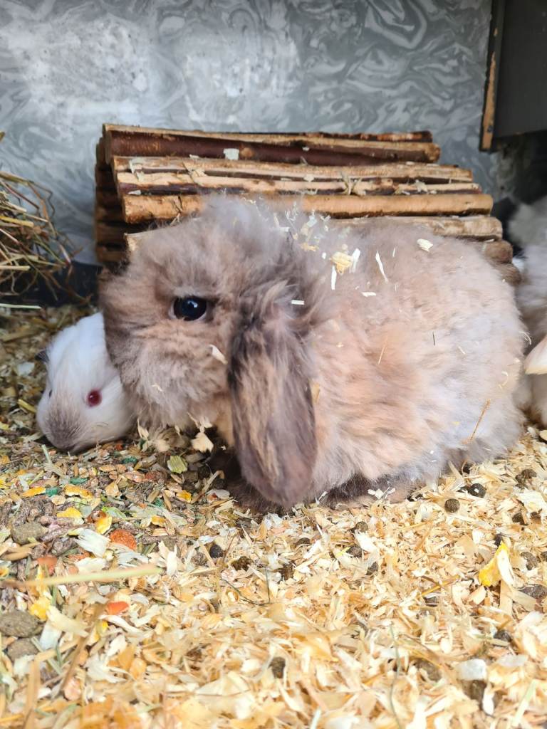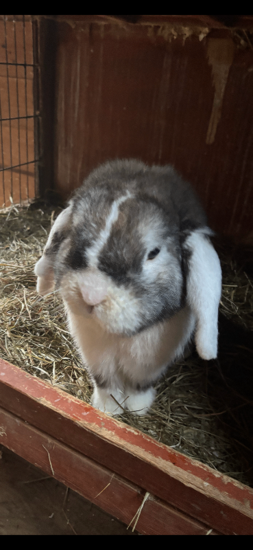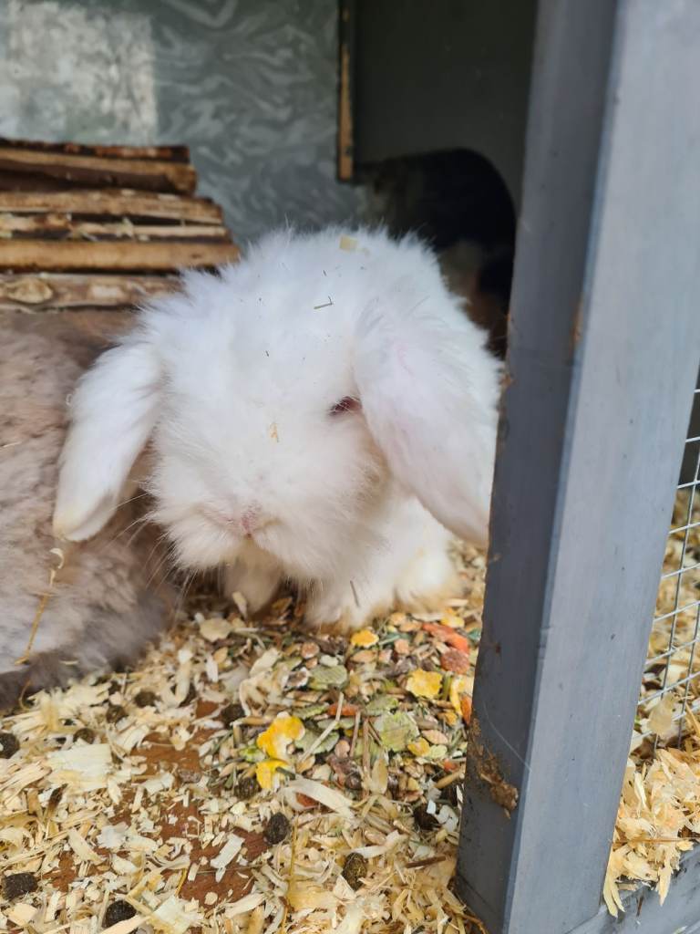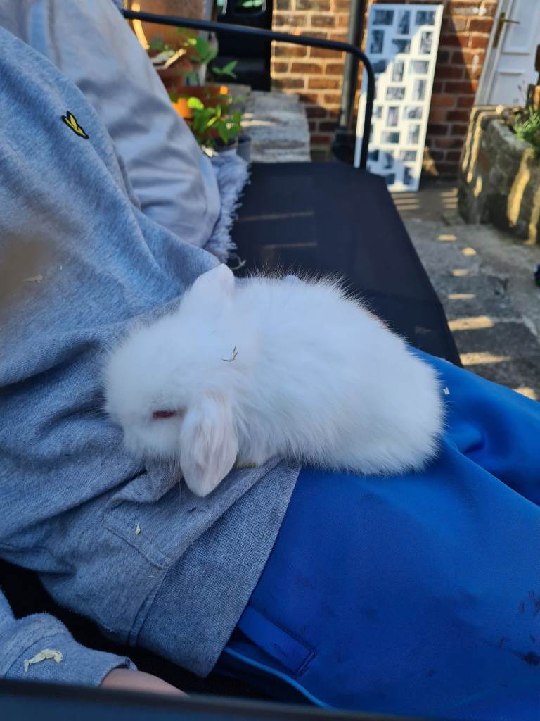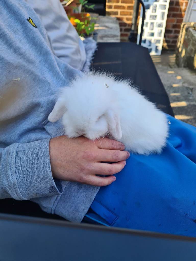 I have two mini lop babies available parents in pictures both white ,not sure on sex as its hard to tell at this age . Think its a boy lol . Out of show stock ,parents and past babies super tame and handled from birth.