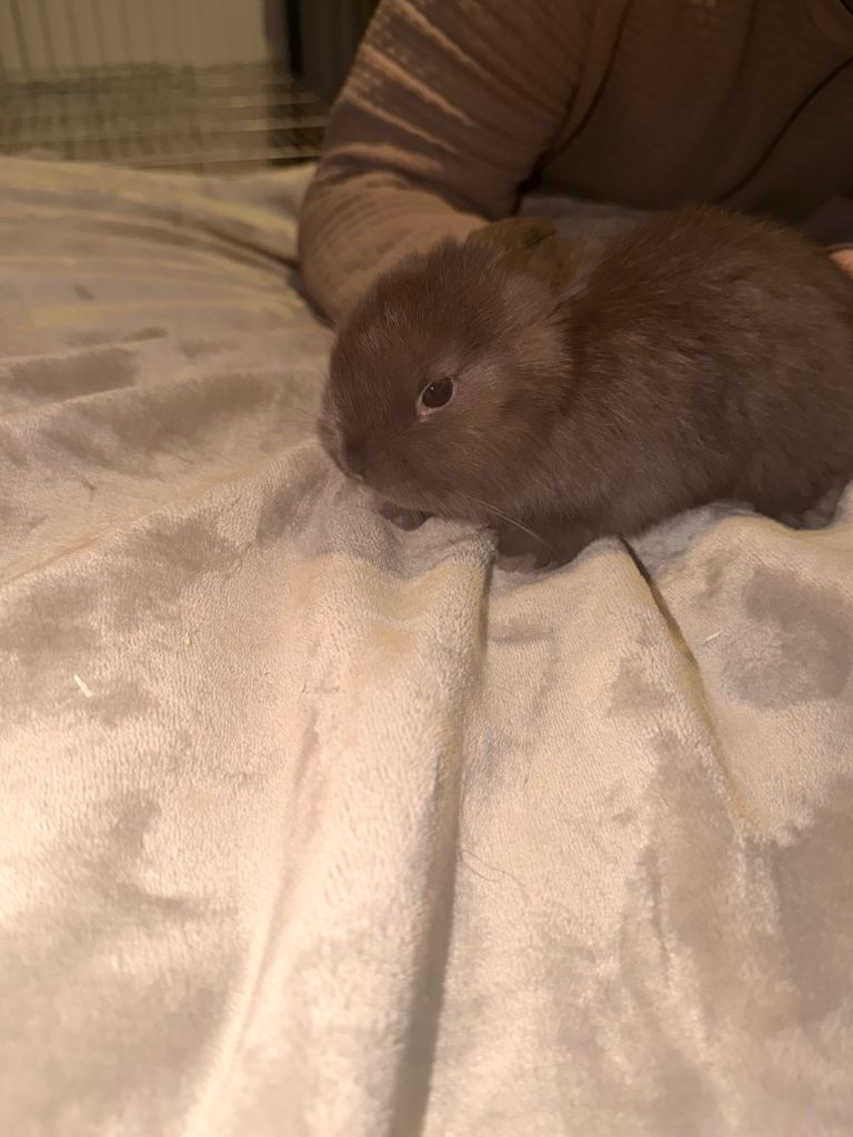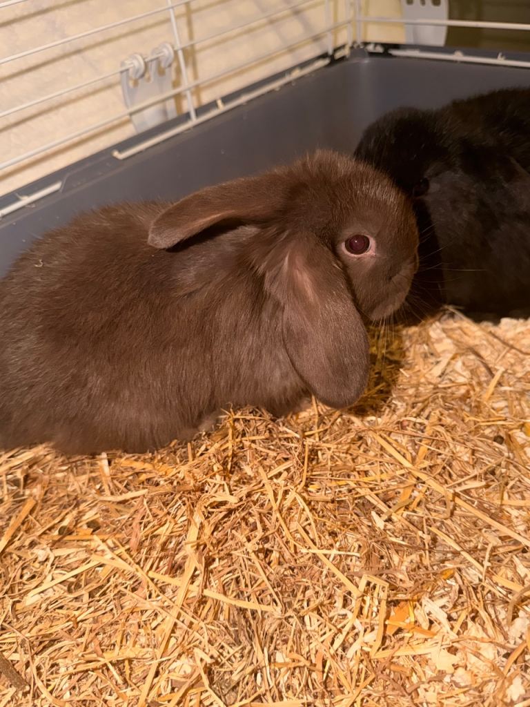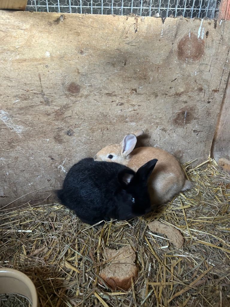 Handled daily both indoor/outdoor rabbits very loving come with a small bag of hand over Food.