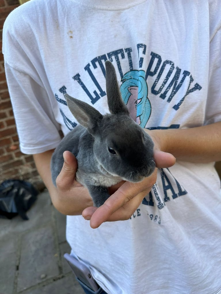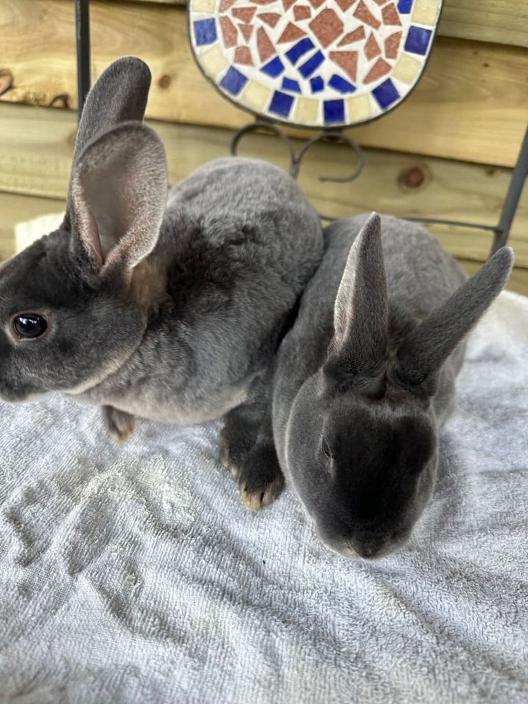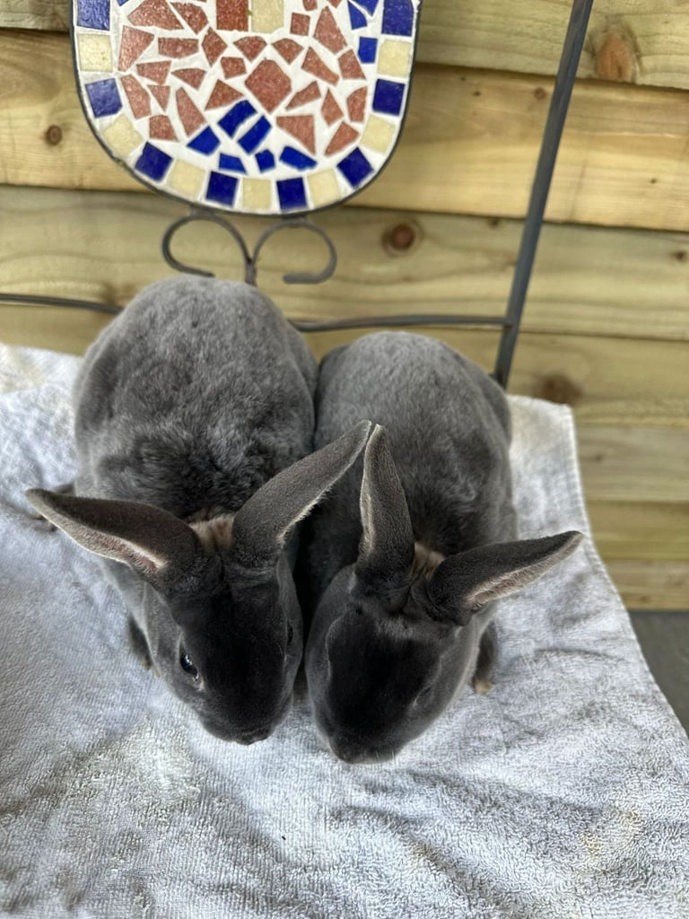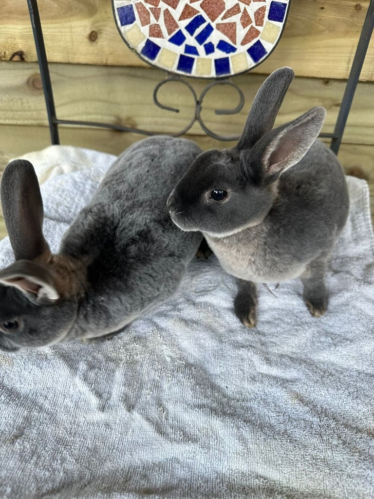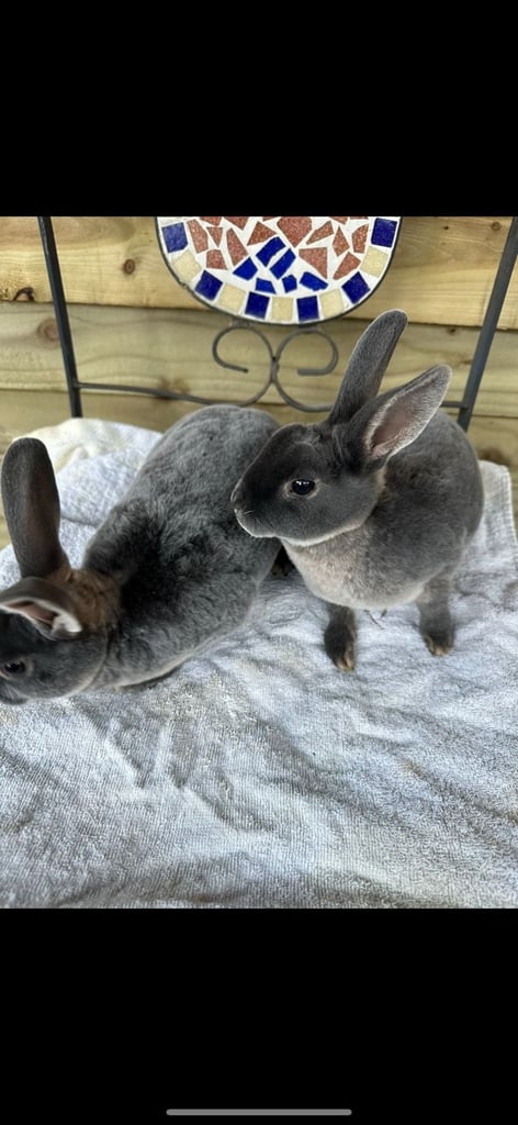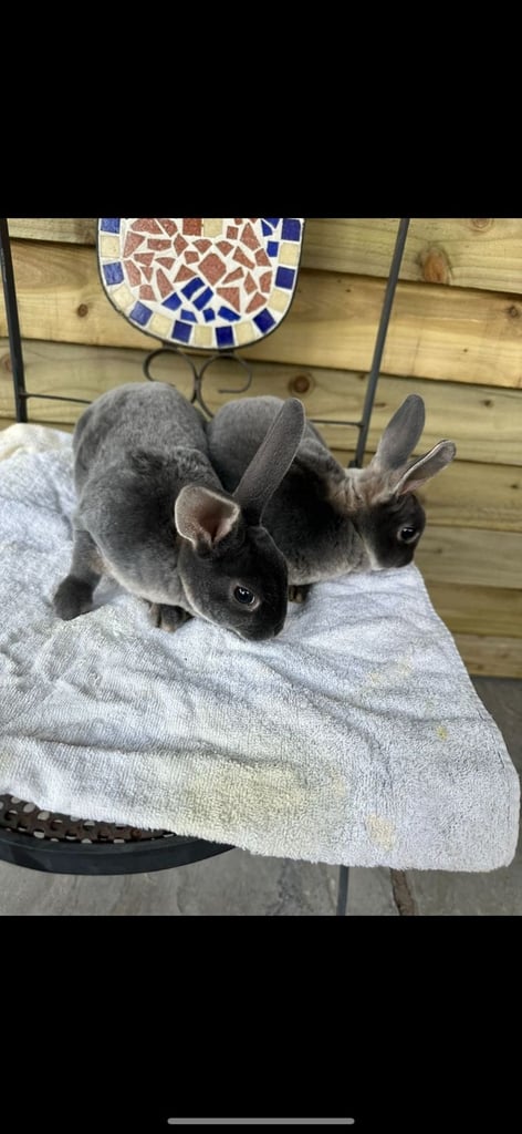 Two dark blue mini rex girls very friendly and use to dogs and cats well handled just 10 weeks