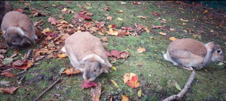4 rabbits for sale, 1 white and 3 ginger as seen in the photos. All rabbits are female, One of the white rabbits is 2 years old all the others are 7 months old. None have been neutered, spayed or vaccinated. Pick up only.