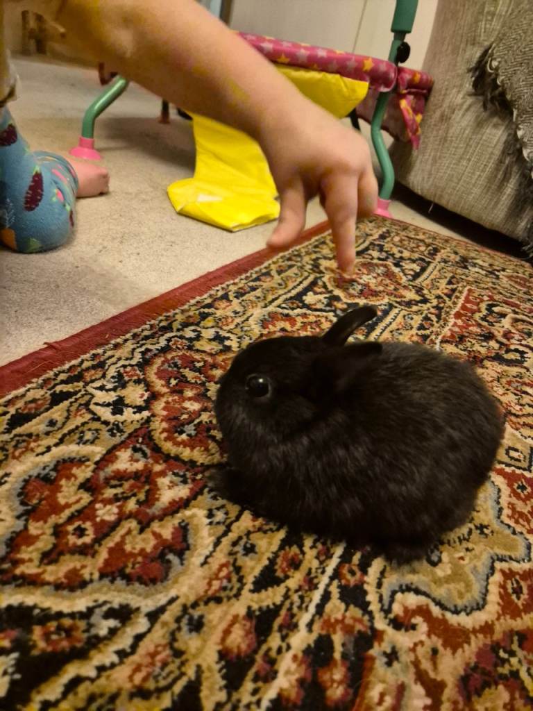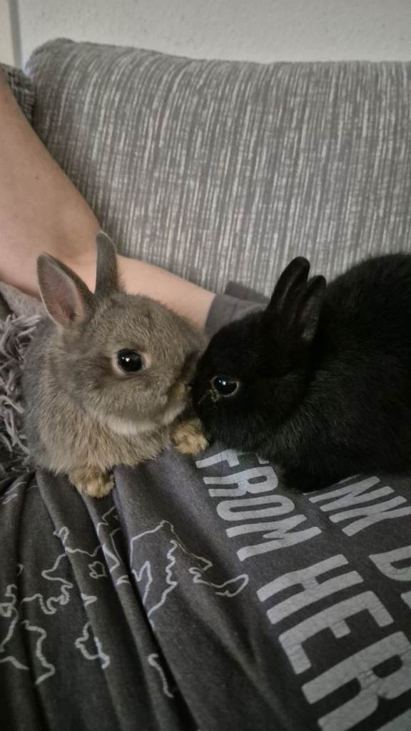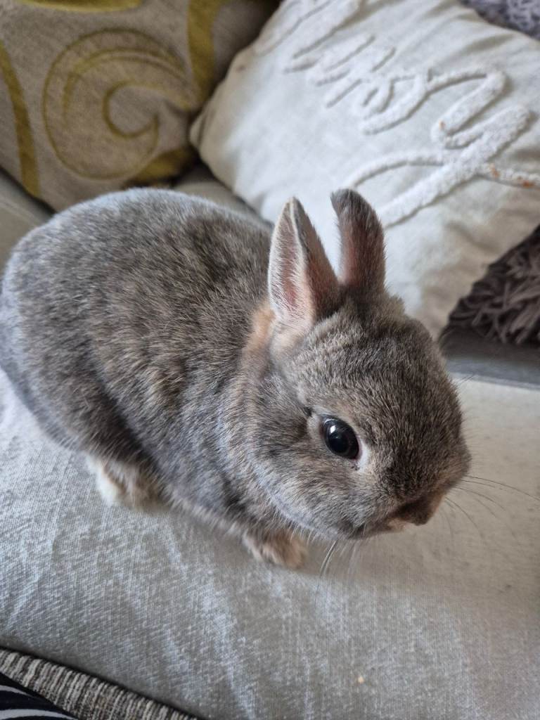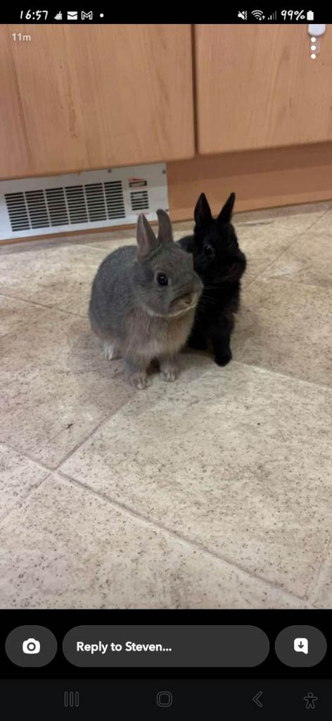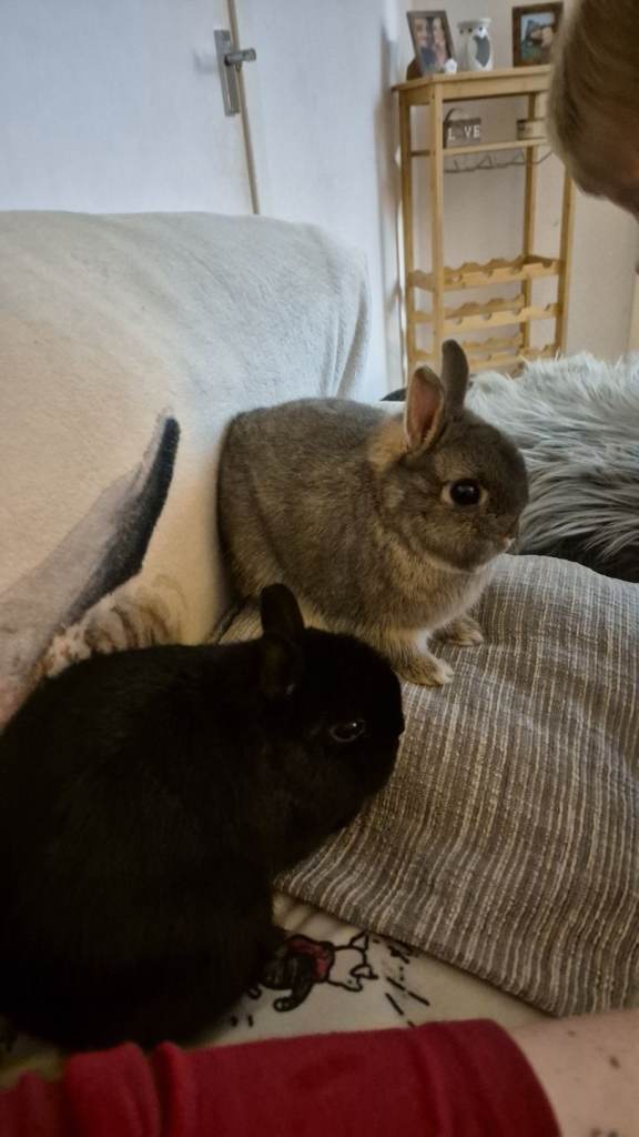 One year old beautiful healthy friendly Netherland dwarf rabbits for sale. Male (neutered) black and female (grey). Must go together as companion buddies.