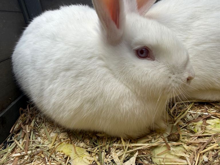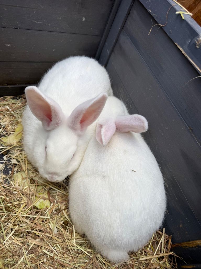Ready to leave Two lovely White New Zealand’s rabbits