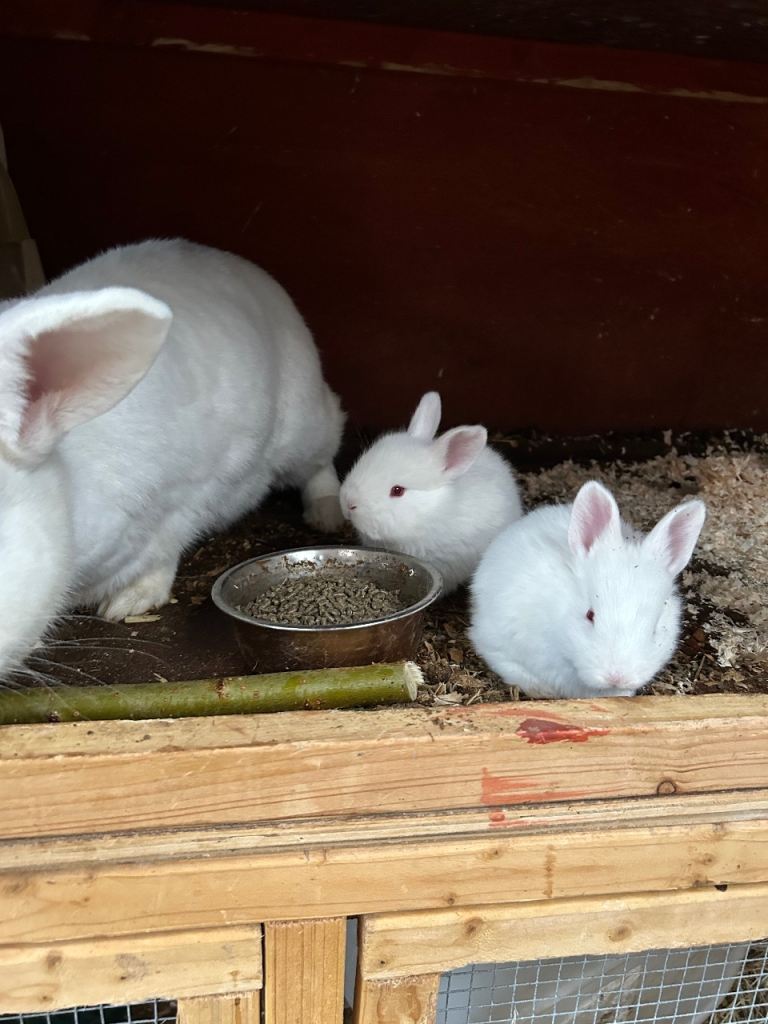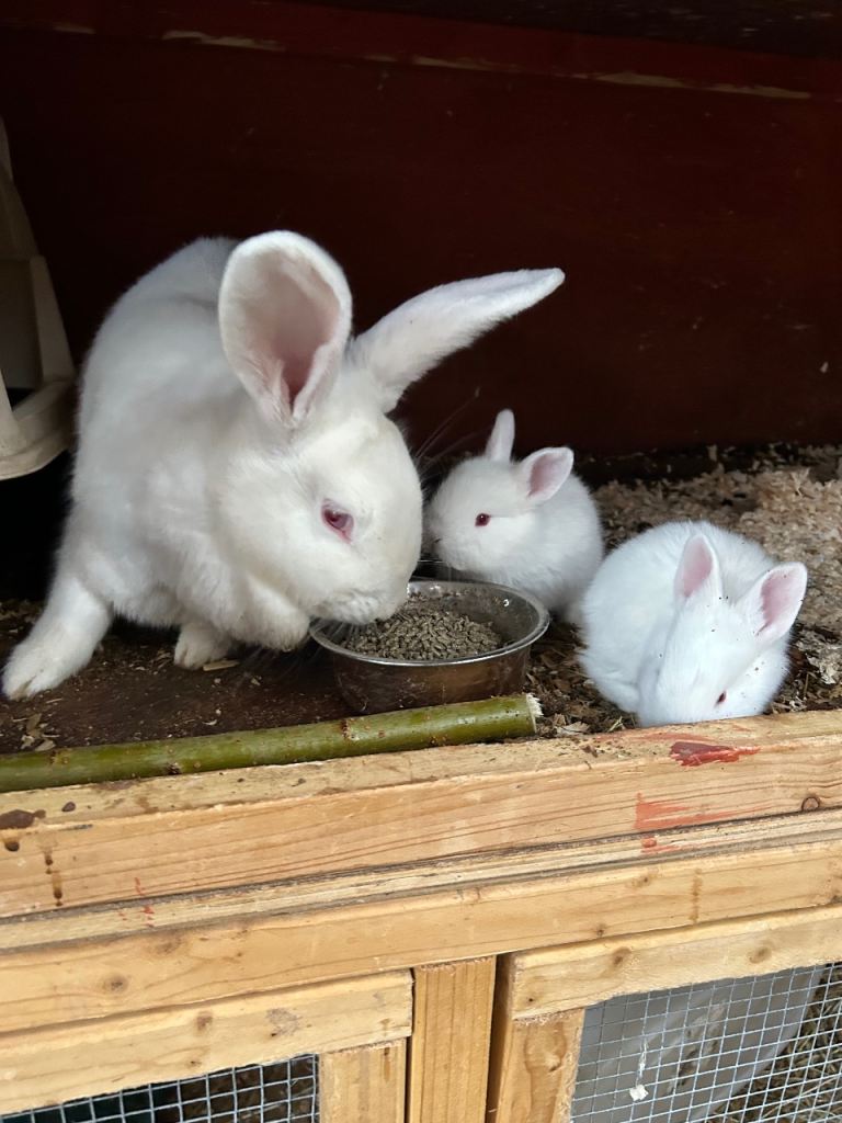 Baby bunnies looking for forever experienced homes. Boys and girls available. New Zealand Whites grow big so average hutch sizes are too small. They are known for their friendly docile natures and make excellent pets.