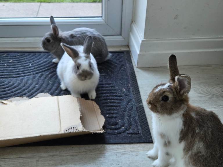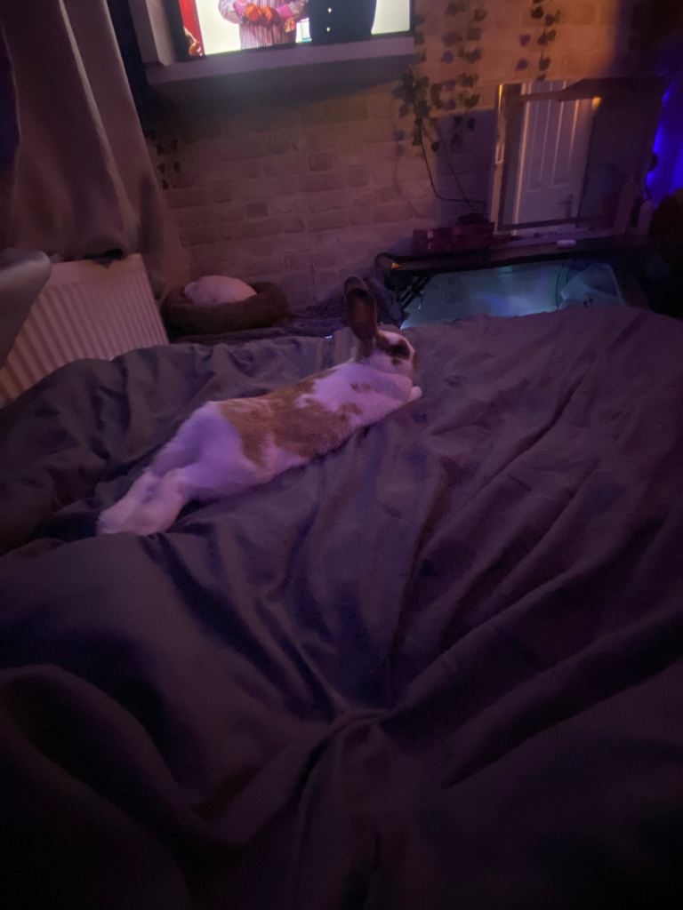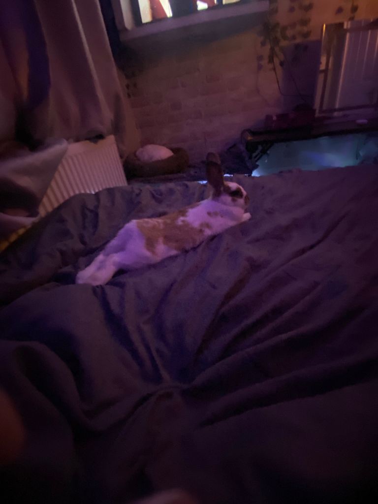 Hello this is daisy my rabbit she is a lovely friendly bunny who is litter trained and is free roamed she does have a home base wich Is a dog crate that she uses to eat and drink water and use the litter box but the crate is open 24/7 so if you are interested just drop me a message