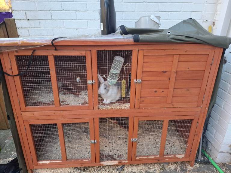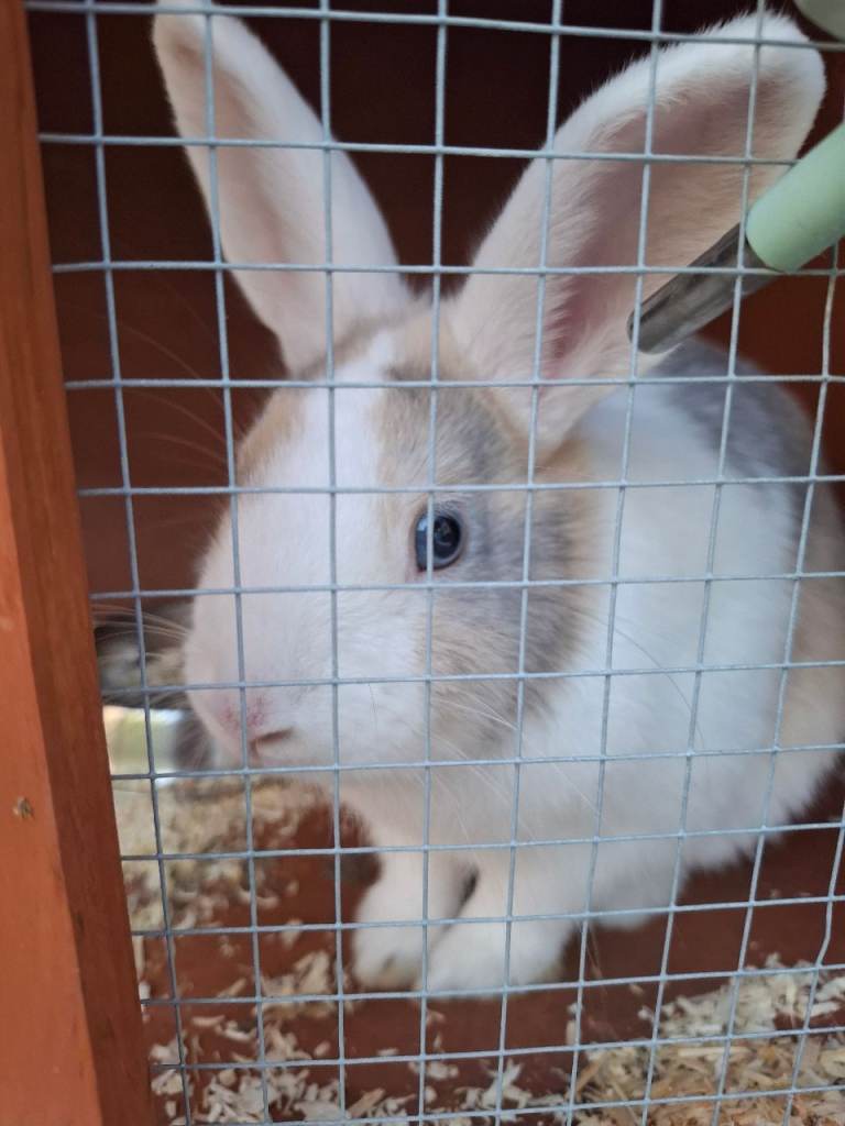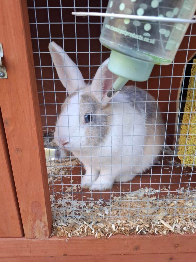 Here we have frosty, he is a beautiful temperament rabbit but still a bit skittish. He loves roaming my garden during the day. Unfortunately he does not get on with my other rabbit. We did buy him as 2nd rabbit as one of my rabbits sadly passed away. They just won't bond, I've bought separate hutches for them I'm happy for frosty to go with the newer hutch, rain cover ect.. i would want frosty to go to a loving home. any enquiries please ask away!