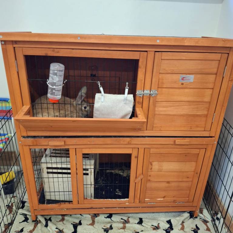 Our Beautiful rabbit bambi forsale,bambi comes with a two story hut. Bambi is tame and loves to cwtch and go for walks on his lead. This is a sad sale due to no time for him. Good home only. Bambi will live in door or out door 5 months old £80 ono
