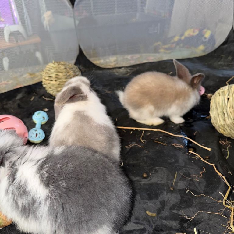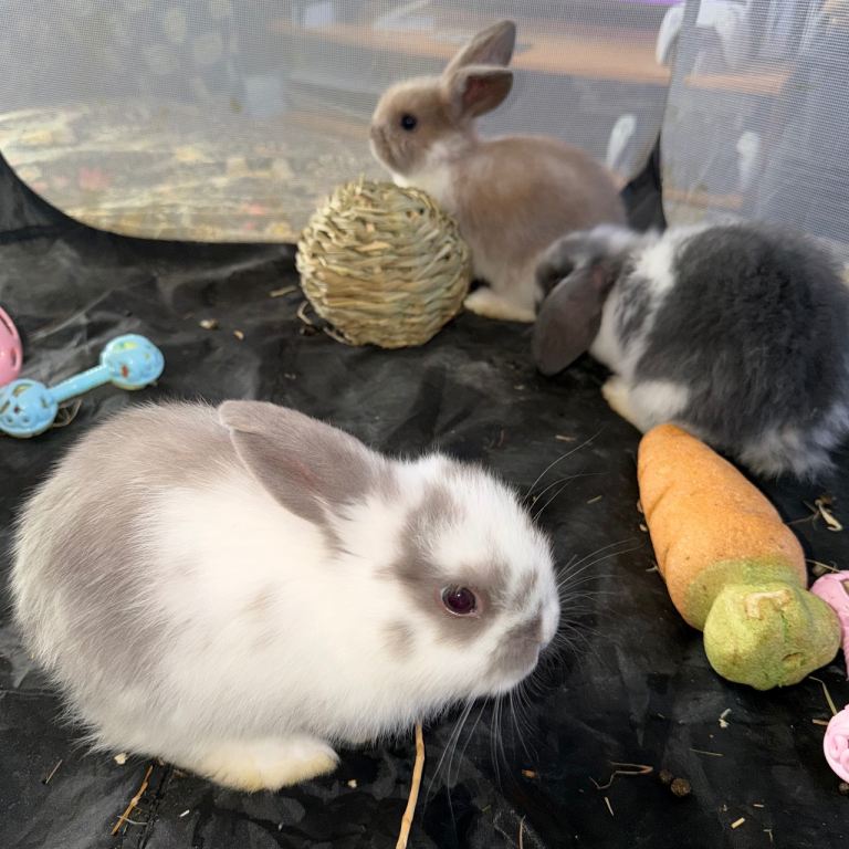 x3 beautiful Minilop babies available from 7th May, x2 boys and x1 girl 🩵🩵🩷