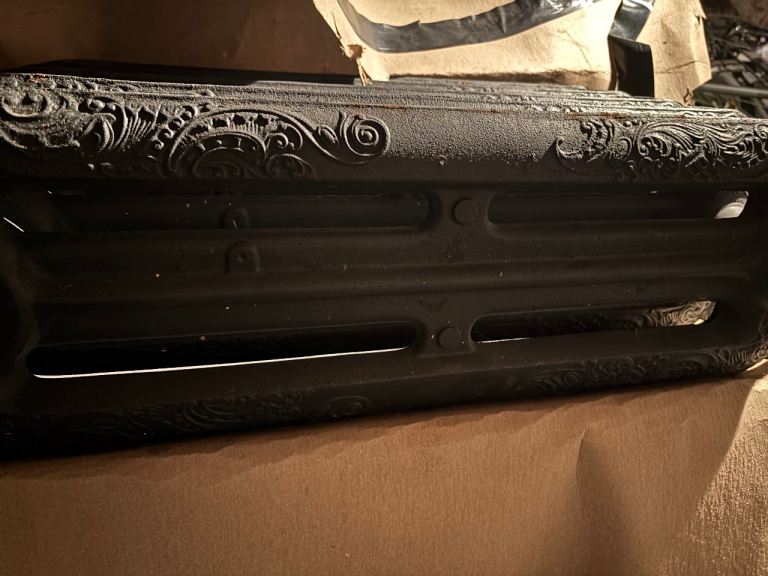 Ornate cast iron radiators. Only used for 1 year as they were too hot for our hall.