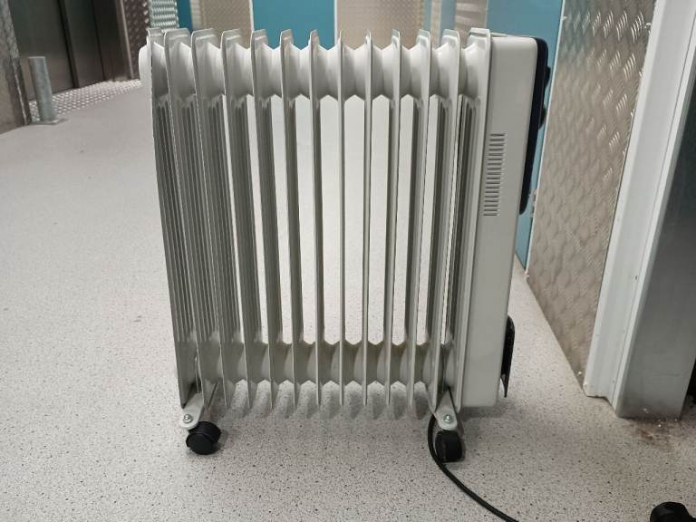 Barely used Clarke 13 finned, 2.5kW oil filled radiator is ideal for office, home or workshop use. Featuring an adjustable thermostat, 6 heat settings and 3 power settings up to 2.5kW, this radiator is perfect for heating small areas quickly and efficiently. It can even be set to it's built-in timer, ensuring you only get heat when you want and need it, saving energy and importantly, money. Lightweight and mounted on casters for portability, this powerful radiator is a fantastic source of cheap, constant heat, to be used anytime, anywhere.