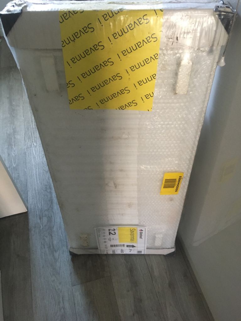 For sale is a used white steel double panel radiator (Type 22) in good working condition. It was recently removed during a home renovation and is ready for a new home.