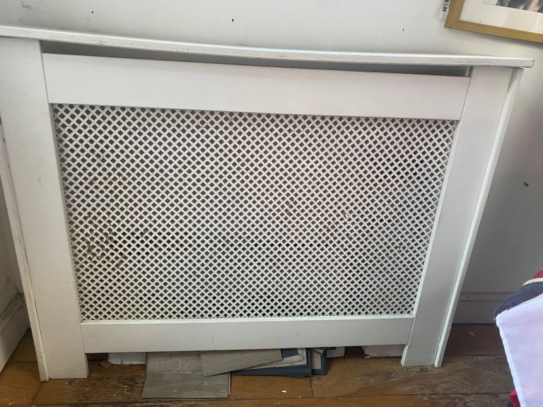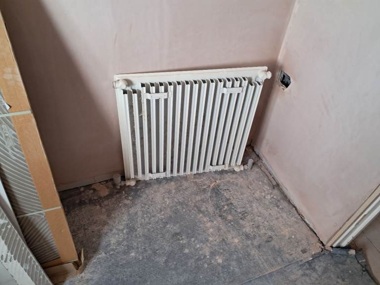 The radiator is clean overall but may need a quick wipe down from storage dust. Perfect for a small room, hallway, or bathroom.